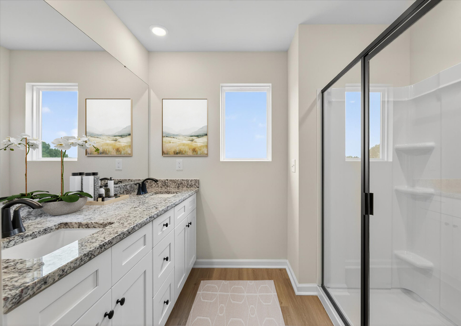 The third floor is dedicated to rest and comfort, featuring a primary suite and two additional bedrooms. The spacious master bedroom boasts an en-suite bathroom with dual sinks, offering convenience and a touch of luxury. With a smart layout and thoughtful finishes throughout, the Willow delivers a balanced blend of privacy, comfort, and elegance.
