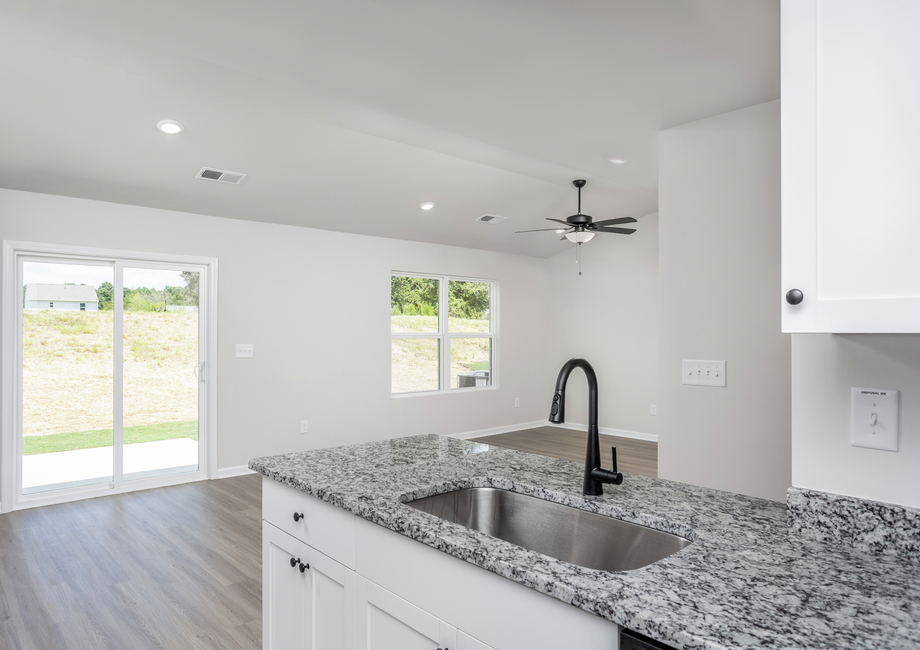 The Aaron’s open layout makes entertaining a breeze. The heart of the home is the chef-ready kitchen, complete with granite countertops, designer wood cabinetry, and a spacious island that serves as a hub for the room. Flowing effortlessly into the dining and living areas, the living area invites connection and conversation. Just outside, the covered back patio offers the perfect spot for summer barbecues, morning yoga, or simply relaxing and enjoying your morning coffee.