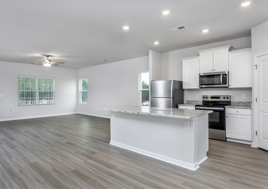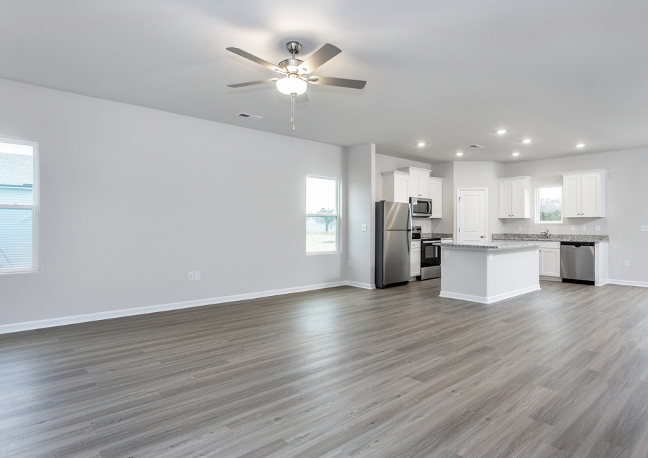 The open concept floor plan is designed to create a seamless and spacious living experience by eliminating any barriers in the home. This layout combines the kitchen, dining, and living room creating one cohesive area, fostering a sense of openness. The open layout makes interaction easy and natural for friends and family to gather and enjoy each other’s company. This design is ideal for family living with an open space where cooking, dining, and relaxation can all happen in one connected space.