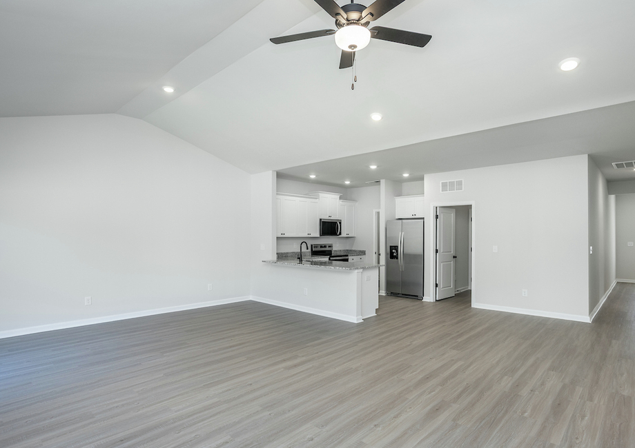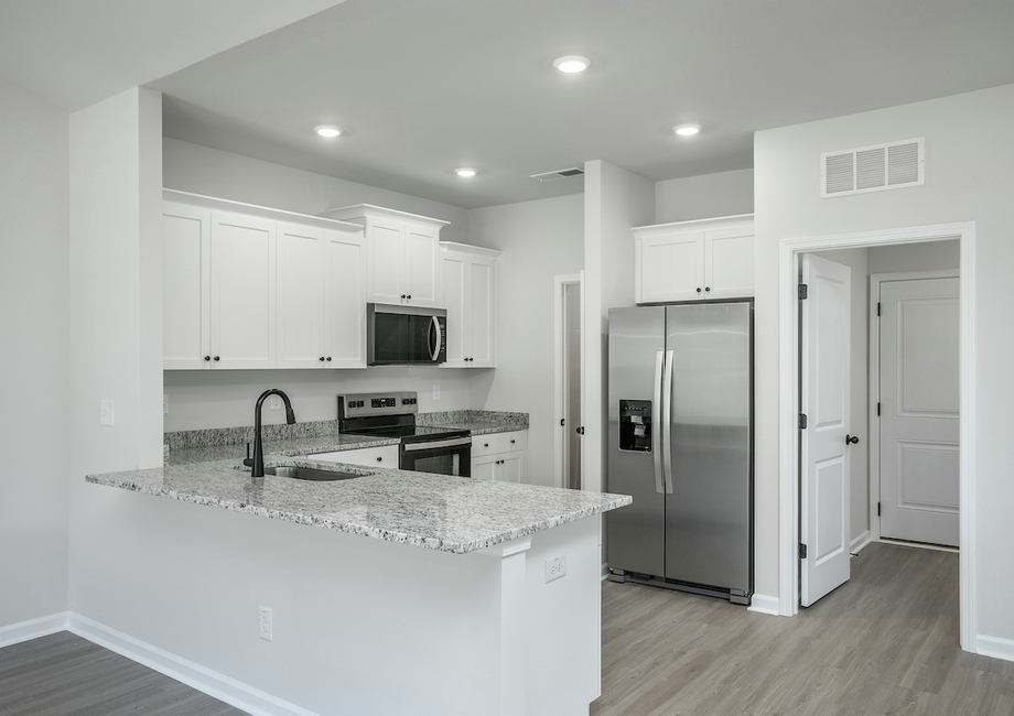 The heart of the Allatoona is its open-concept layout, where the kitchen, dining area, and living room flow seamlessly together. The kitchen is chef-ready with its granite island, ample cabinet space, and stainless-steel appliances, all overlooking the main living area. perfect for hosting or staying connected with family while cooking. This thoughtful design encourages togetherness and creates a bright, airy environment ideal for both daily routines and special gatherings.