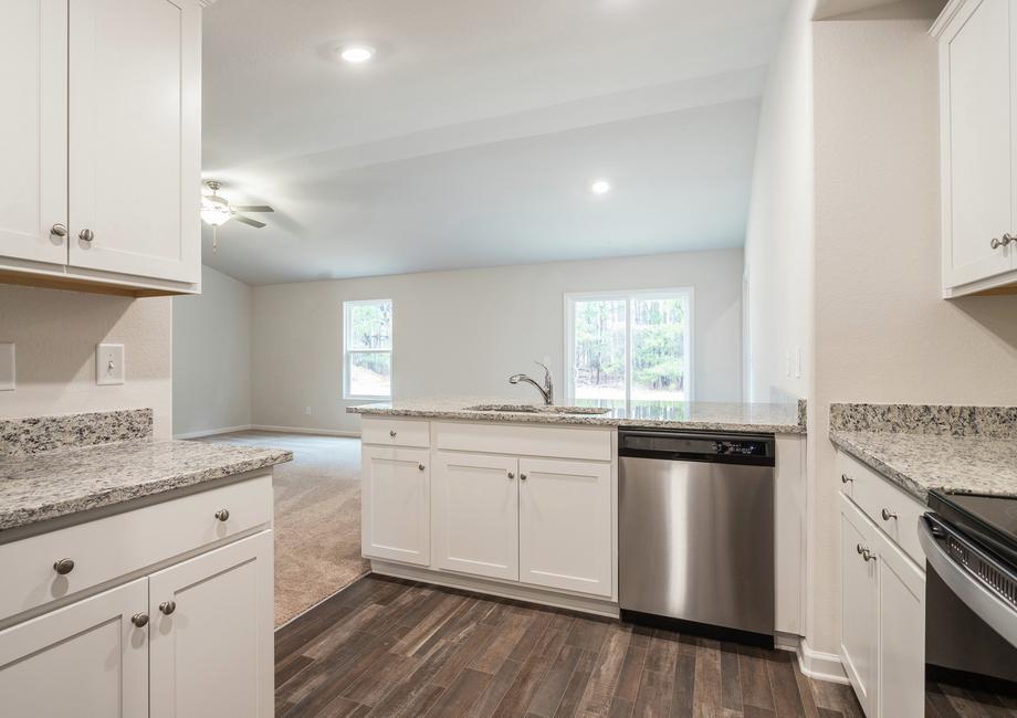 In this amazing floor plan, the kitchen is sure to be the heart of the home. An open layout allows you to flow directly into the living and dining area, so you won’t feel closed off when entertaining or cooking dinner. Spacious granite countertops, stainless-steel kitchen appliances and stunning wooden cabinetry guarantee that this kitchen is both stylish and functional.Beautiful Curb Appeal