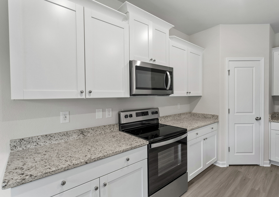 This home features the CompleteHome™ package by LGI Homes. This highly sought-after package includes a full suite of energy-efficient Whirlpool® kitchen appliances, granite countertops, and designer wood cabinetry. Additionally, the home features a Wi-Fi-enabled garage door opener, programmable thermostat, and professional front yard landscaping, all at no extra cost to you!
