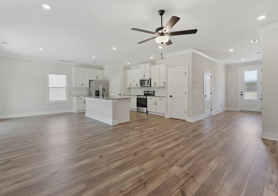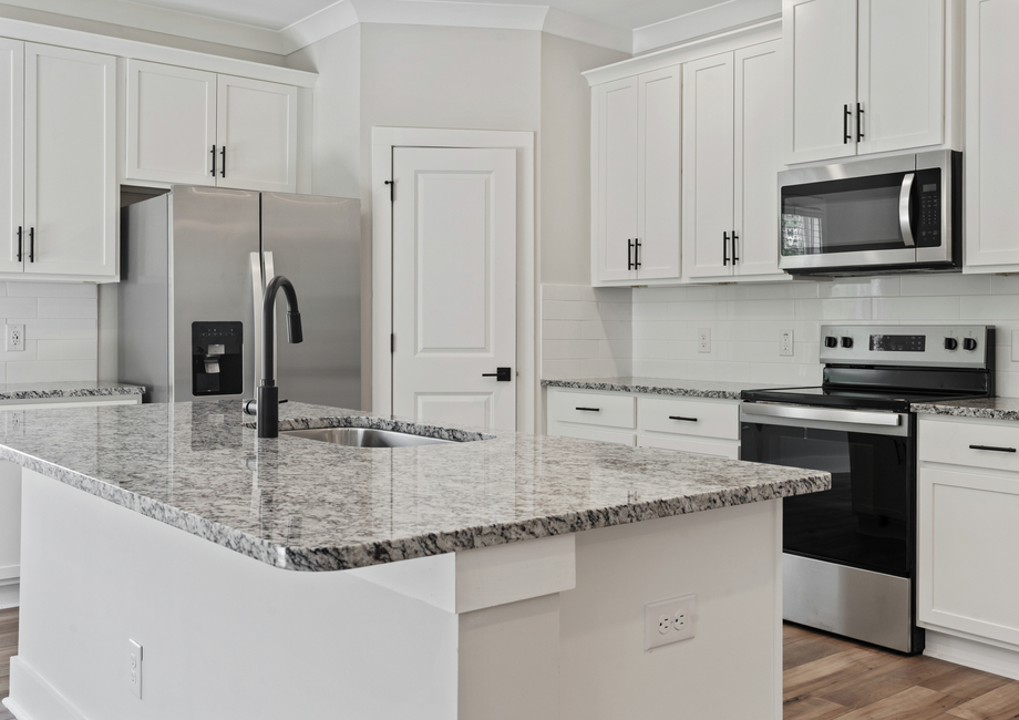 The chef-ready kitchen is fully equipped with energy-efficient stainless steel Whirlpool® appliances, granite countertops, 36” upper wood cabinets with crown molding, and a large center island. Additionally, there will be a pantry which provides additional storage, making meal prep and organization effortless. The kitchen is the perfect place to cook for your kids, host for the holidays, or just sit back and enjoy a home cooked meal.