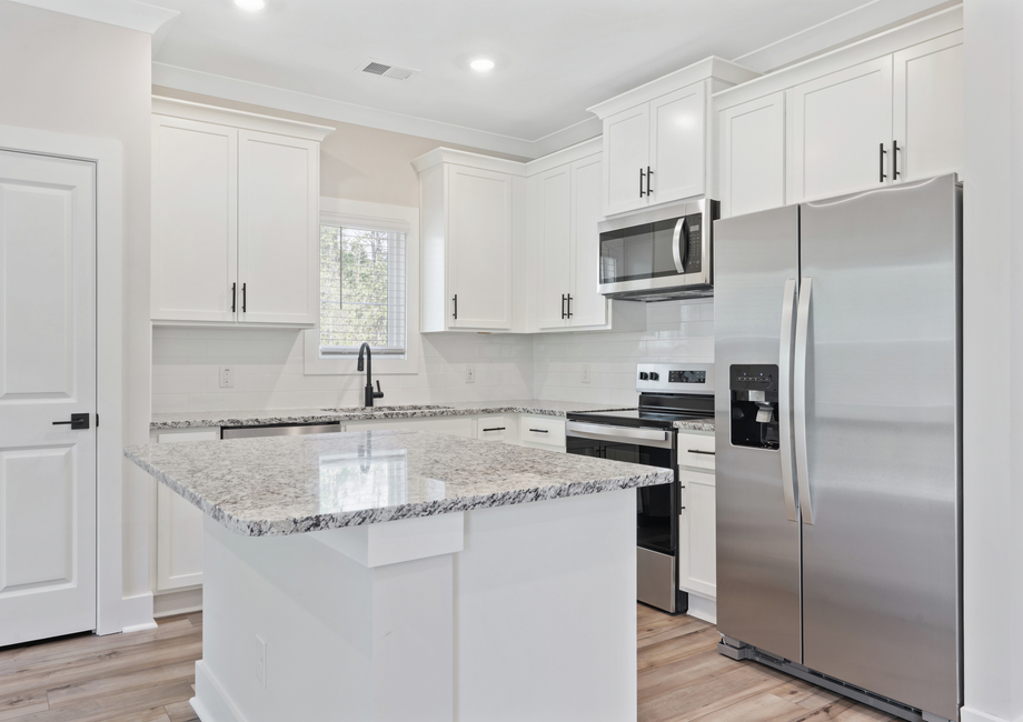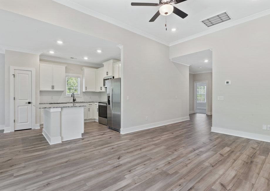 The Blanco’s living area features a spacious, open layout, allowing for effortless flow between rooms. The chef-ready kitchen is equipped with stainless steel Whirlpool® appliances, granite countertops, 36” upper wood cabinets with crown molding, and a large island, offering plenty of space for meal prep while staying connected to guests in the dining and living areas. The dining area, conveniently located off the kitchen, makes serving meals quick and easy, while the living room, just steps away, allows you to keep an eye on the kids or catch your favorite show while you cook.