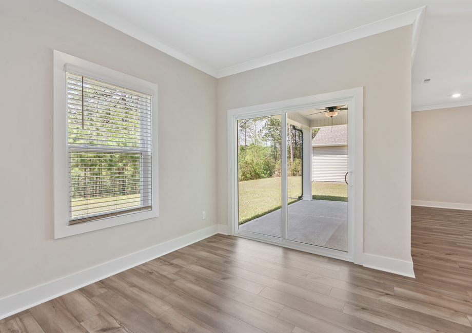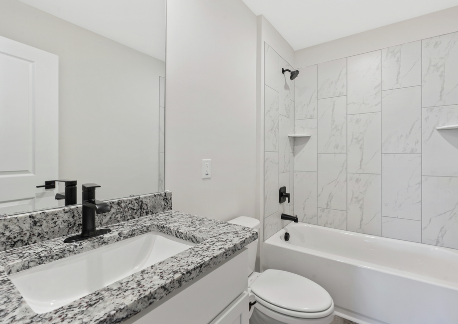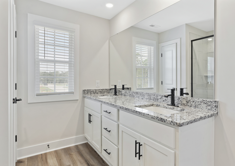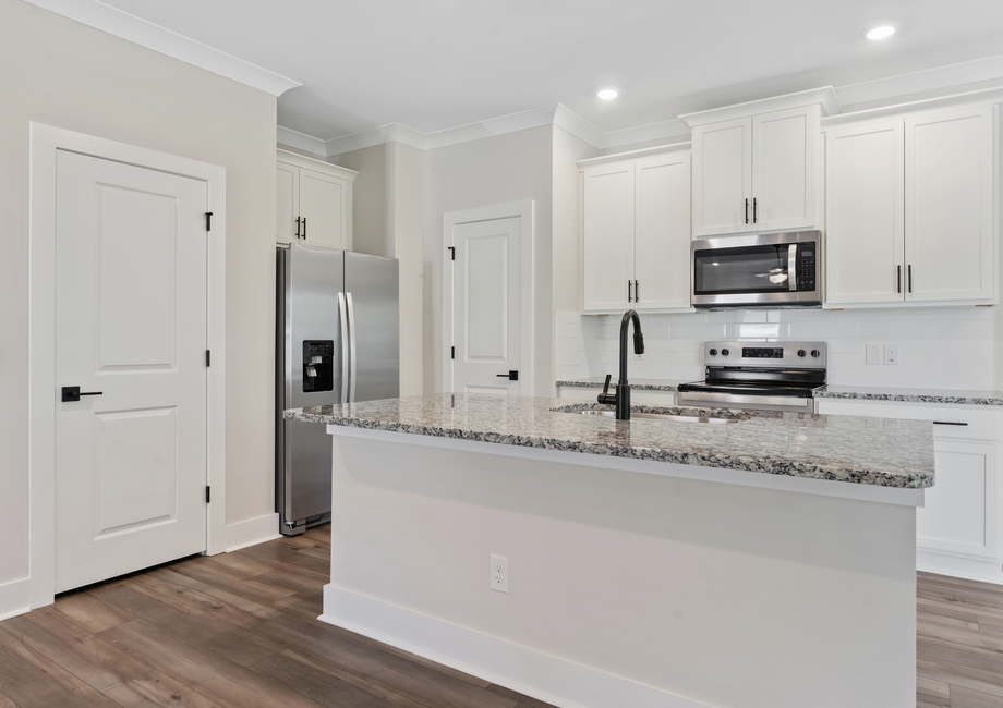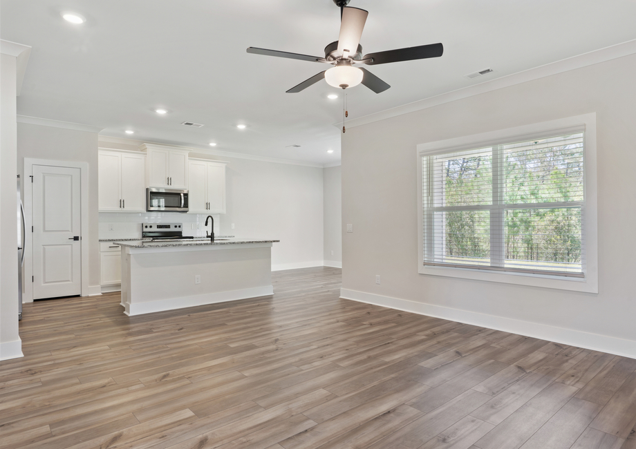 The open-concept layout of the Carolina effortlessly connects the kitchen, dining area, and family room, creating a seamless flow that’s perfect for both family living and entertaining. The chef-ready kitchen is equipped with modern stainless steel appliances, granite countertops, and a large island, making it easy to prepare meals while staying connected to the dining and living areas. This design allows for easy interaction between rooms, making the space feel bright, airy, and perfect for everyday life and special gatherings.