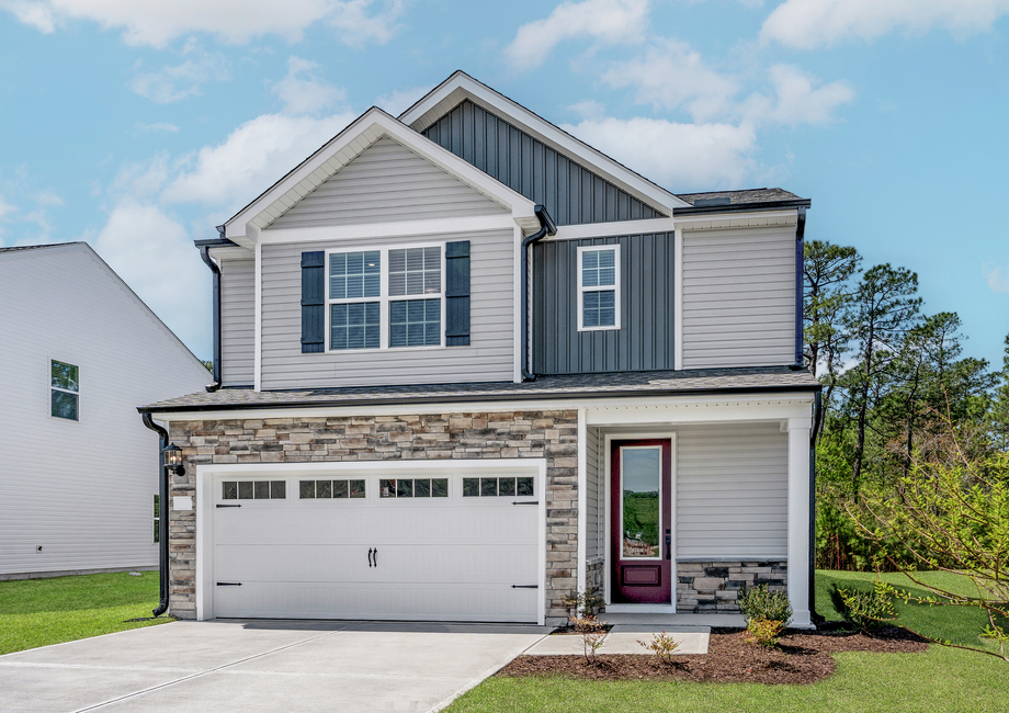 The exterior of the Carolina makes a lasting impression with its striking curb appeal. The spacious two-car garage provides plenty of room for vehicles and additional storage, while the beautifully landscaped front yard adds to the home’s inviting presence. The exterior finishes, including elegant stone detailing, make this home stand out in any neighborhood.