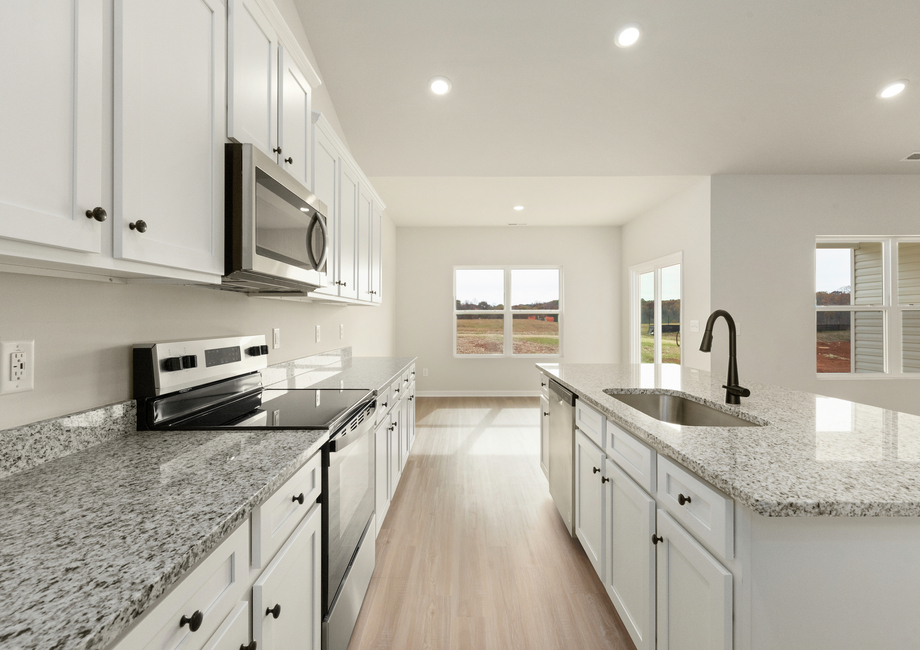 The Cary floor plan is designed with entertaining in mind, thanks to its open-concept layout. The chef-ready kitchen features beautiful granite countertops, stainless steel appliances, and ample cabinet space. The island overlooks the spacious living room, making it easy to engage with guests while preparing meals. The seamless flow from the kitchen to the dining and living areas makes this home ideal for hosting everything from casual family dinners to larger gatherings, with plenty of room for everyone to feel comfortable.