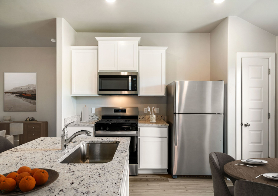 From early morning coffee to hosting friends and family, the Birch kitchen is built to impress and make every moment in the heart of the home feel effortless. Featuring quartz countertops, upgraded wood cabinetry, and stainless-steel Whirlpool® appliances, it combines functionality with modern style. A large center island offers extra space for prepping your favorite meals, entertaining friends or even a quick meal at the breakfast bar.