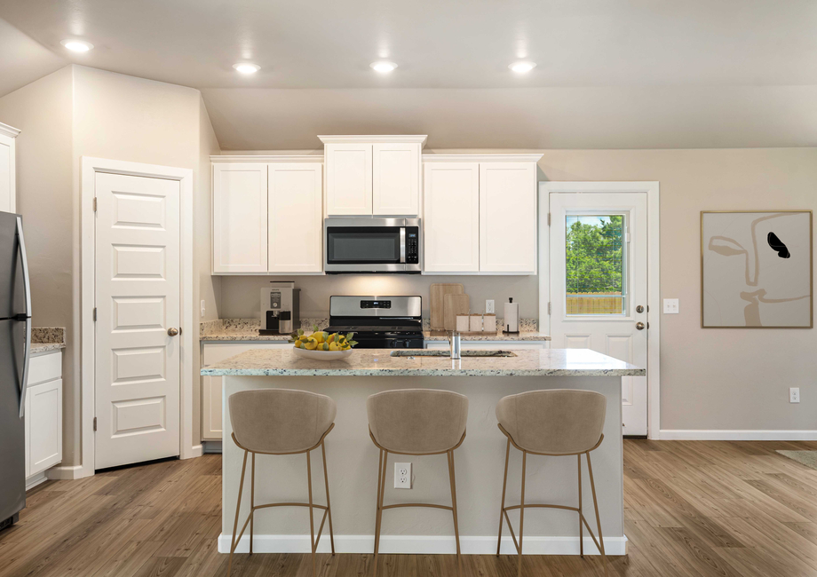 The welcoming front porch of the Keystone floor plan is a charming first impression, offering a covered area that shields you and your guests from the elements. The gorgeous brick exterior enhances the porch’s appeal, providing a taste of the stylish and comfortable space within. This front porch is the perfect touch to make coming home a delightful experience.