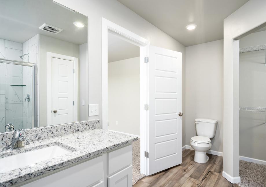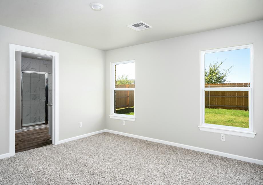 The master suite is a highlight of this home. The large bedroom has two windows that fill the space with plenty of natural light and provide an exclusive view of the fenced-in back yard. The master bathroom has a large vanity, spacious glass shower and huge walk-in closet.