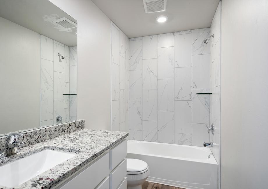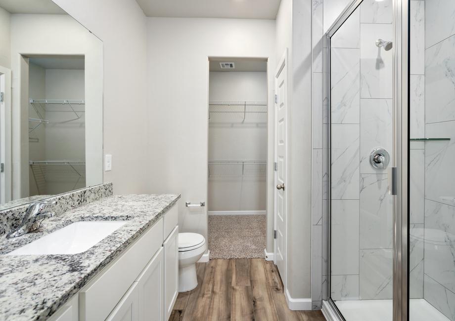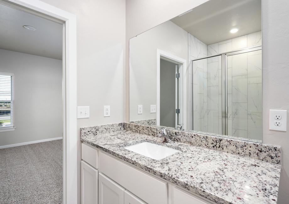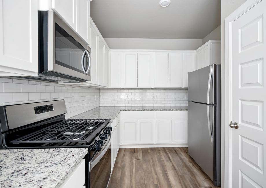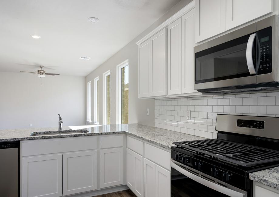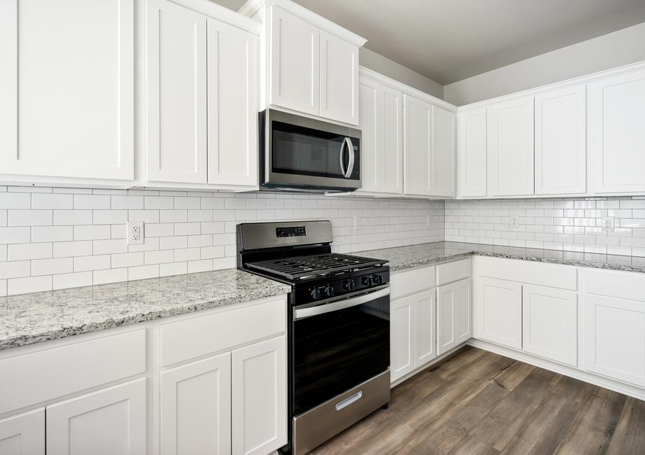 The kitchen of your dreams is waiting for you in the Sudan floor plan at Tuscany Lakes. Equipped with energy-efficient appliances, sprawling granite countertops and designer wood cabinetry, this kitchen will elevate your cooking experience. The ample cabinet and drawer space are a great place to put all of your cooking utensils, pots, pans and dishes. The Moen® faucet and Whirlpool® dishwasher make your clean-up game stronger! Enjoy spending time making your family wonderful meals in the kitchen of the Sudan.