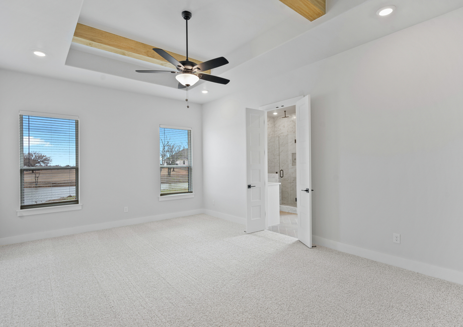 Restful relaxation awaits you in the beautiful master suite of the Hefner plan. Tucked away in the back corner of the home and highlighted by a stunning coffer ceiling and peaceful back yard views, this spacious suite is sure to exceed expectations. The luxurious master bath showcases separate sinks, a freestanding tub, extended shower and a huge walk-in closet. One of the most coveted features of the master suite is the connected utility room. Enjoy doing your laundry without ever leaving your closet!