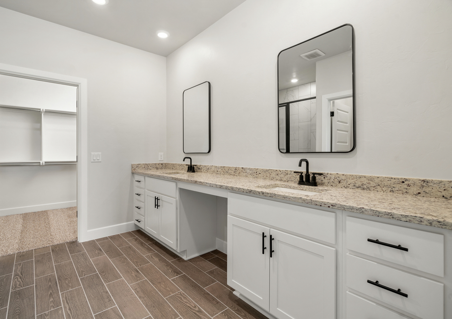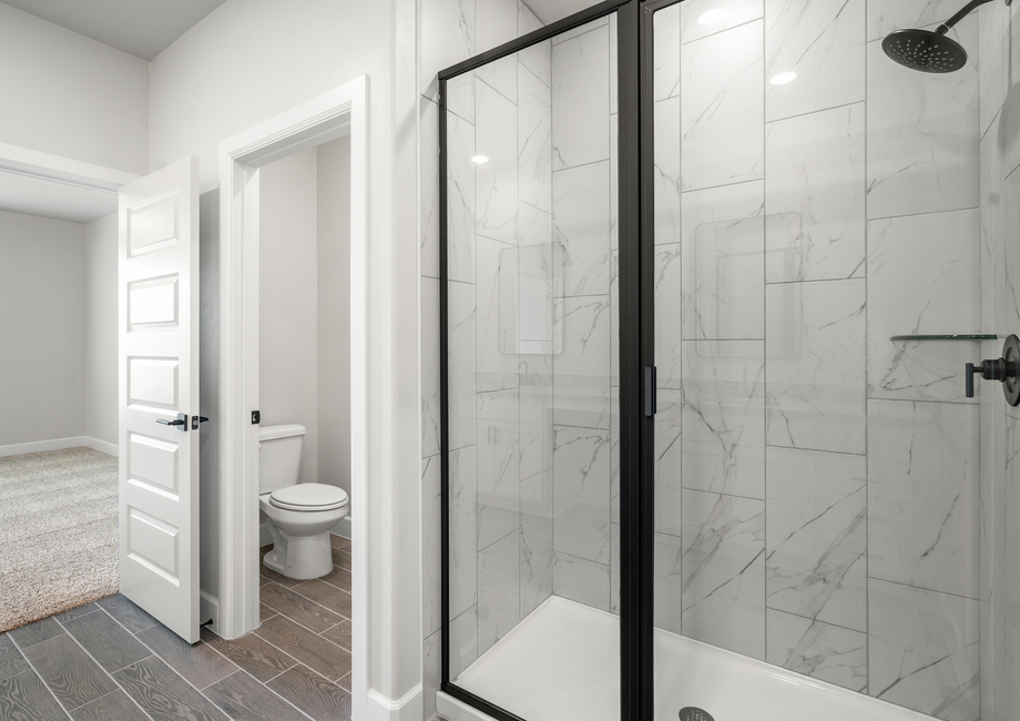 Relax and unwind in the beautiful master suite of the Nicklaus. Designed to be a restful retreat, this space is highlighted by the high ceilings, natural light, and en-suite master bathroom. Inside the bathroom, homeowners will enjoy a gorgeous dual-sink vanity, a large glass shower, a separate toilet room and access to the spacious walk-in closet.