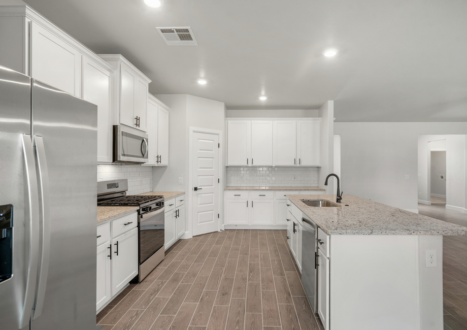 The kitchen is one of the most important spaces in a home, and you will fall in love with this one! This state-of-the-art kitchen is complete with a large island, gorgeous granite countertops and energy-efficient appliances. Gorgeous white wood cabinetry provides needed storage for cookware and dishes, while the impressive walk-in pantry is the perfect place to store food and other necessities.