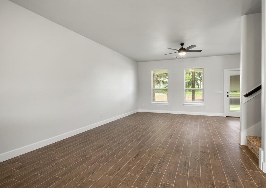 The Woods floor plan provides upgrades that will elevate your everyday lifestyle. From the upgraded fixtures and features to the walk-in closets in every bedroom, not a detail was spared when designing this beautiful home. Featuring an open layout, the spacious kitchen, dining area and family room are perfect for entertaining friends and family. Oversized windows in the family room overlook the covered back patio that welcomes you to enjoy an evening outdoors.