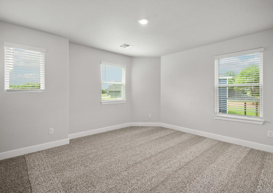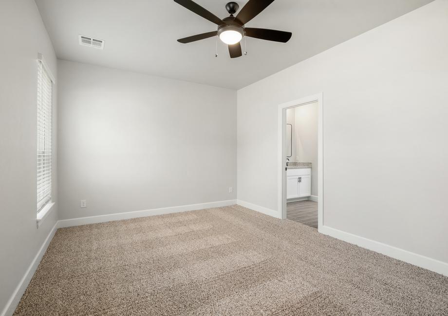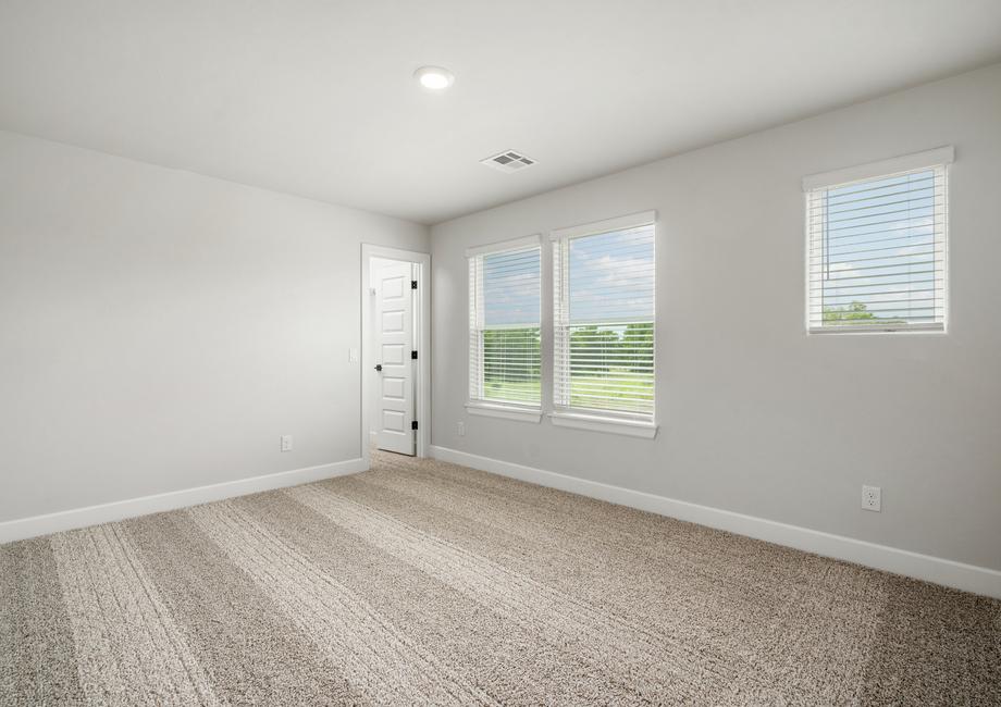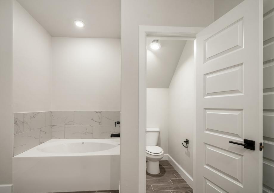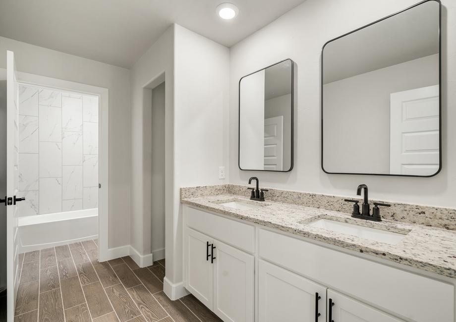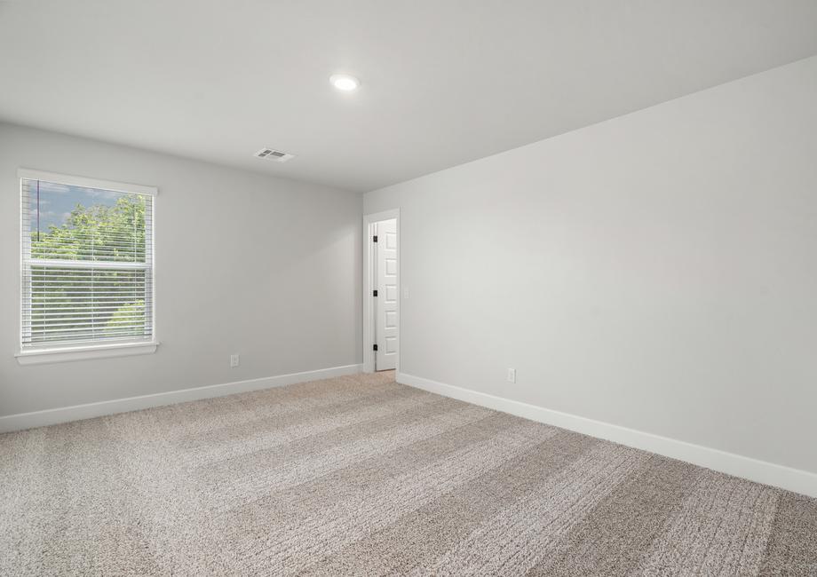 Secluded from the other bedrooms in the house, the master retreat of the Woods plan is the perfect space to begin and end each day. The master suite boasts a beautiful high ceiling and plenty of natural light, providing a light and airy feel to this peaceful retreat. The en-suite master bath showcases a gorgeous dual-sink vanity, a separate shower, a stunning soaker tub and access to the spacious walk-in closet. You will love having a space all your own to unwind after a long day.