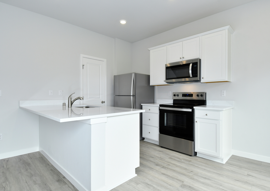 You will be ready to host the next get-together in the Chimera, which features an open-concept design with the kitchen opening to a spacious family room and bright dining room. Recessed LED lighting in the kitchen shows off the gorgeous wood cabinets topped with crown molding and the polished granite countertops. Durable luxury vinyl plank flooring sets the stage beautifully and handles high traffic effortlessly. In addition, the Chimera comes equipped with a full suite of Whirlpool® kitchen appliances, so let the party preparations begin!