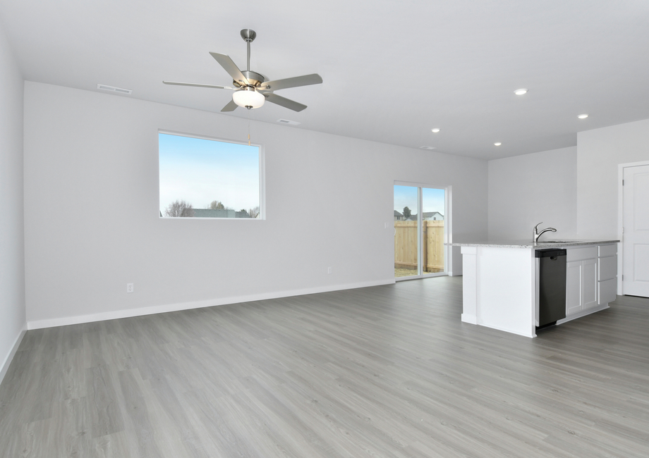 The open-concept entertaining areas of the Hawthorn provide the perfect backdrop for your gatherings, big and small. The spacious living room easily accommodates a sectional sofa and entertainment center and features a large window overlooking the back yard. The open and bright kitchen is equipped with granite countertops, gorgeous wood cabinets topped with crown molding, and stainless-steel Whirlpool® appliances. LED flush mount ENERGY STAR lights and a sliding glass door in the dining room ensure your meals are seen in a positive light.