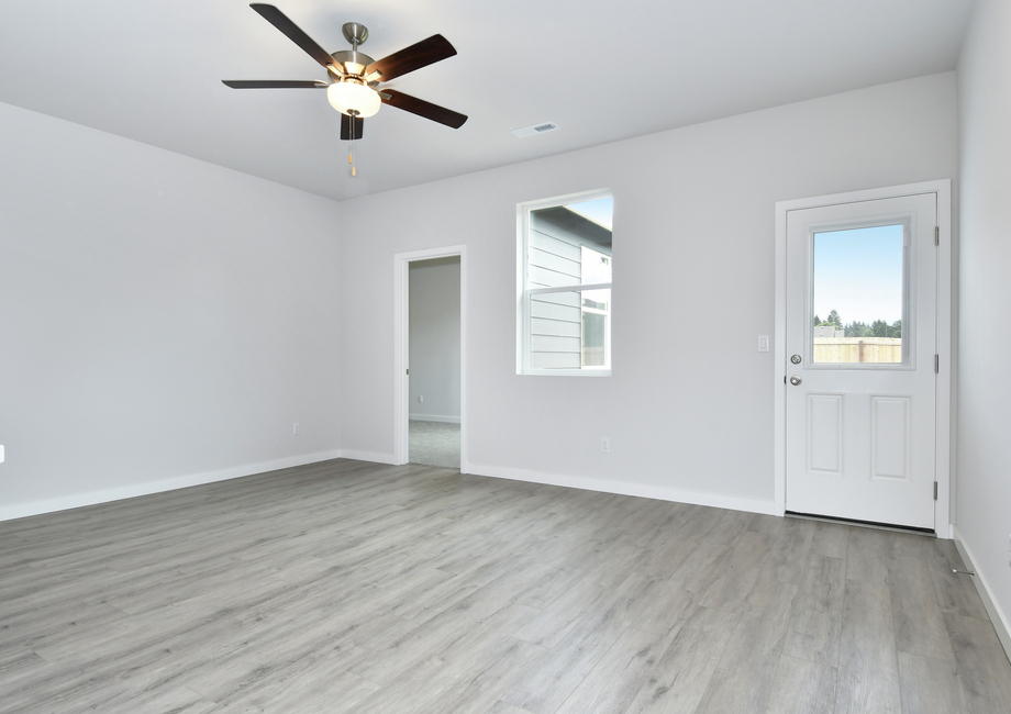 Step into a charming oasis with this beautifully designed three-bedroom, single-story American plan that effortlessly blends comfort and style. The inviting exterior features classic siding that sets the stage for a warm welcome. Inside, a sprawling family room offers an ideal space for relaxation and gatherings, while the elegant formal dining room provides a refined setting for cherished meals and celebrations. The serene master bedroom, a true retreat, boasts ample space and privacy, offering a tranquil escape at the end of the day. With its thoughtful layout and inviting ambiance, this home is perfect for both cozy family moments and sophisticated entertaining.