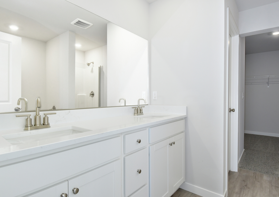 This stunning home offers a private owner’s retreat created for ultimate comfort and peace. The generously sized bedroom can easily accommodate a king-sized bed, two nightstands, a dresser, and more. The attached bathroom boasts an expansive walk-in shower, a luxurious soaking tub, and a dual-sink vanity. You’ll also appreciate the spacious walk-in closet in the owner’s retreat for all your storage needs.