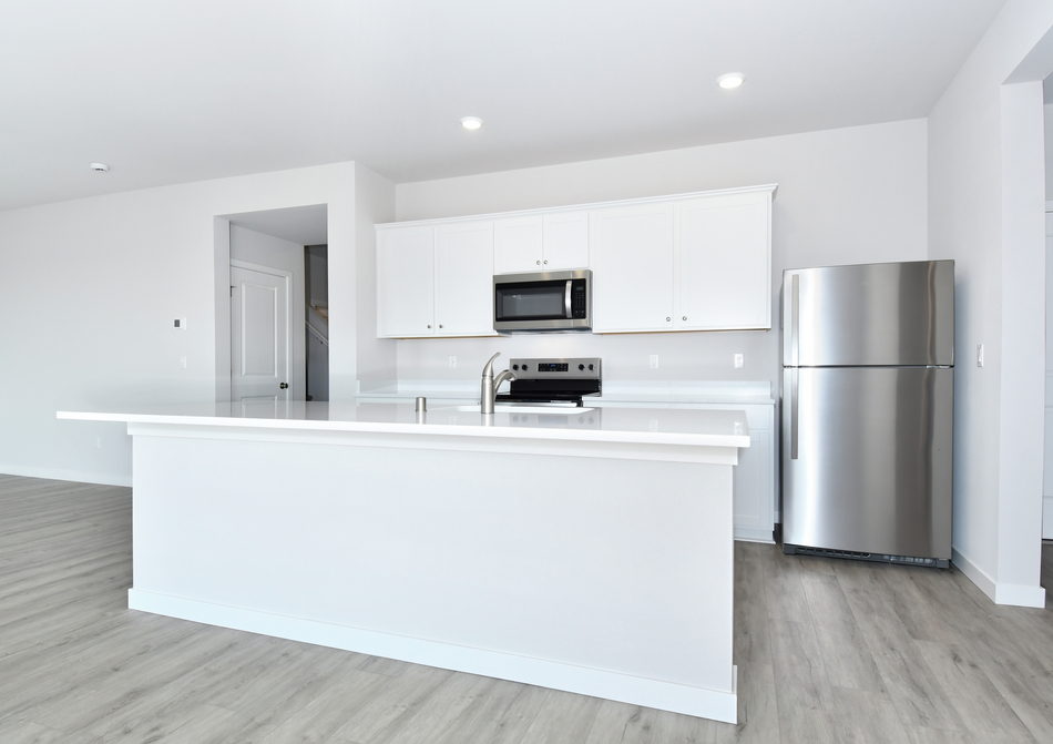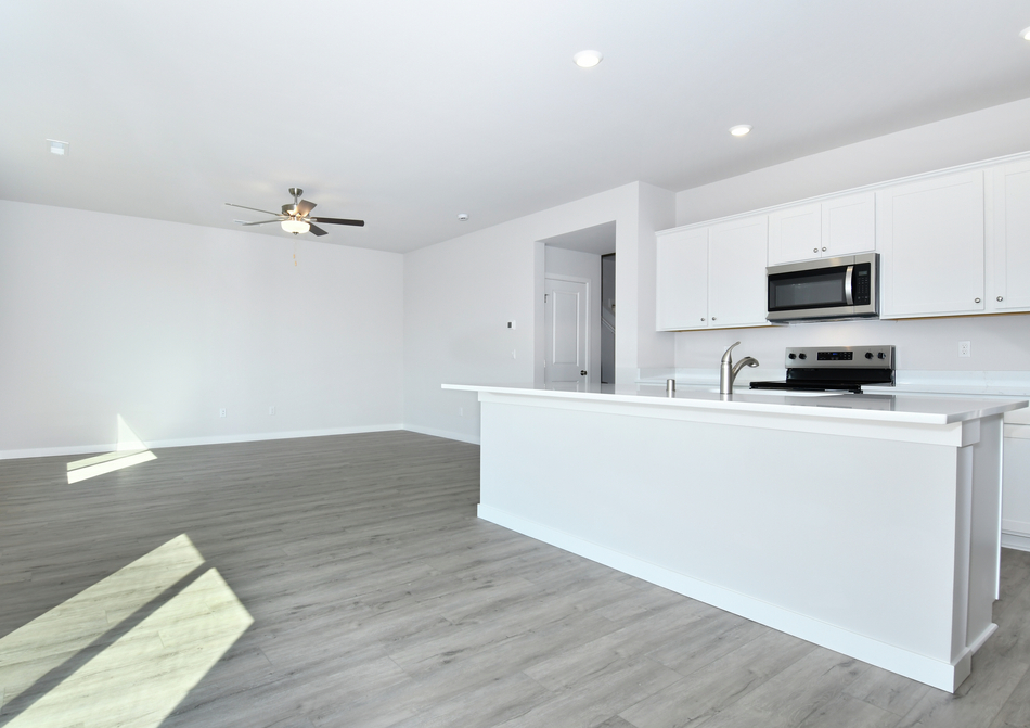 The Kettle offers an expansive open concept living space on the first floor. Modern flooring enhances the home’s aesthetic, providing ample space for your living room sofa, entertainment center, and coffee table. Adjacent to the living room is a large dining area. Enjoy meals or relax on the outdoor deck accessible from the dining room. There's also a fantastic flex room near the foyer, perfect for an office, playroom, or even a formal dining area.