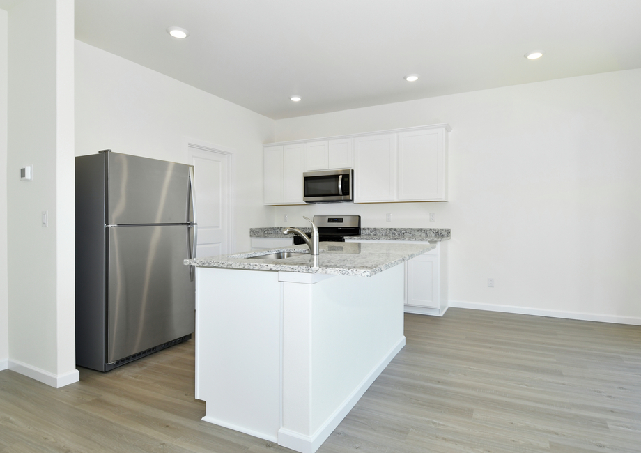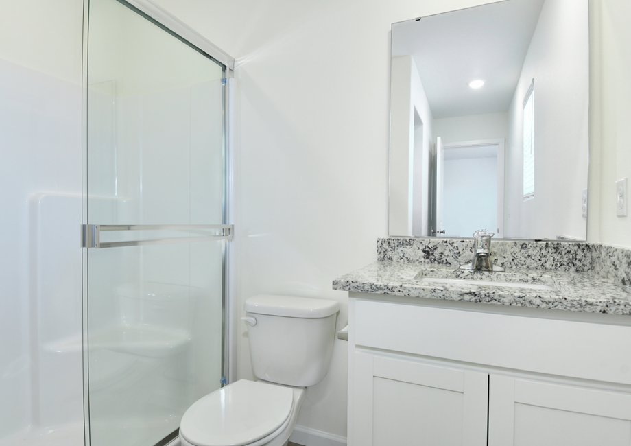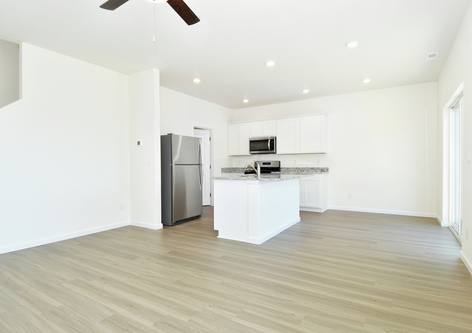 You will enjoy spending time in the open-concept entertaining areas of this home. The family room is spacious and includes a window overlooking the back yard. The modern kitchen comes equipped with a full set of stainless steel appliances by Whirlpool® and stunning granite countertops. In addition to a walk-in pantry and a breakfast bar island, the kitchen offers easy access to the adjacent dining room, where a sliding glass door leads to a covered back patio perfect for your next cookout.