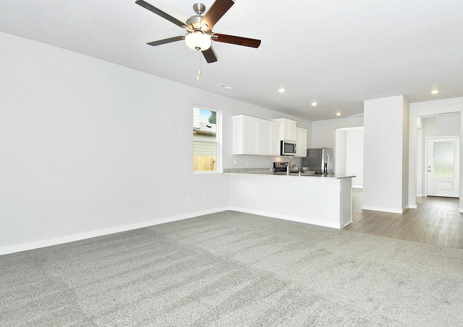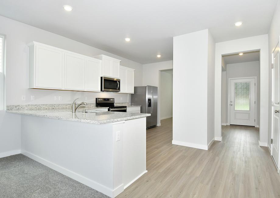 Whether you are celebrating a holiday or special event, or simply watching a football game with friends, the Columbia offers the space to do it in style. The private dining room sets the stage for memorable dinners, while the open kitchen and family room are perfect for gathering larger groups. You will love the upgraded kitchen, which includes a polished quartz breakfast bar, full suite of stainless-steel appliances, recessed LED lighting and designer plank flooring. You and your guests will be comfortable in the spacious living room, which is large enough to accommodate oversized furniture, including a sectional sofa and large TV.