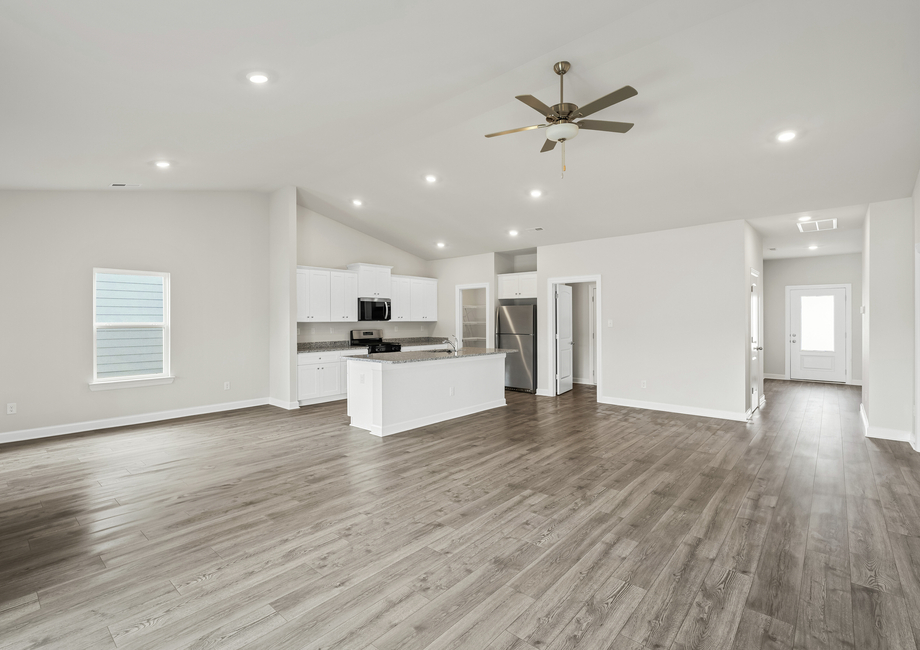 The Burton plan is a brand-new, single-story home available at Carter’s Retreat. With three bedrooms, two full baths, a chef-ready kitchen, a formal dining area, and a huge family room, this home packs in an incredible amount of space and upgrades all in one story. Off the family room is a large, covered patio with room for furniture or even a grill. This home also has a master suite that has two walk-in closets, and an en-suite bathroom. To top it off, you will love the flex room that can be made into an office or play room.
