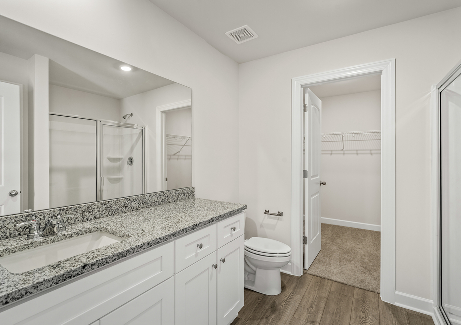 Master the art of rest and relaxation in your private owner’s suite. The master bedroom is located on the second floor and is tucked away from the other three bedrooms. Attached to your master bedroom is a luxurious en-suite bathroom with a step-in shower and a large vanity. You’ll never have to worry about running out of room, because this plan includes a spacious walk-in closet with more than enough room for all your clothes, shoes, accessories and more!