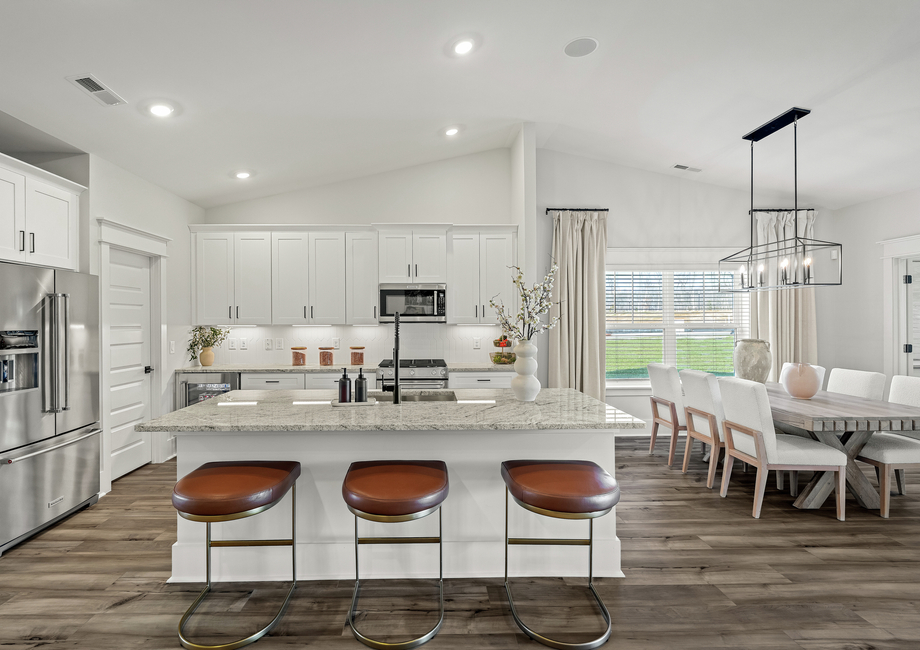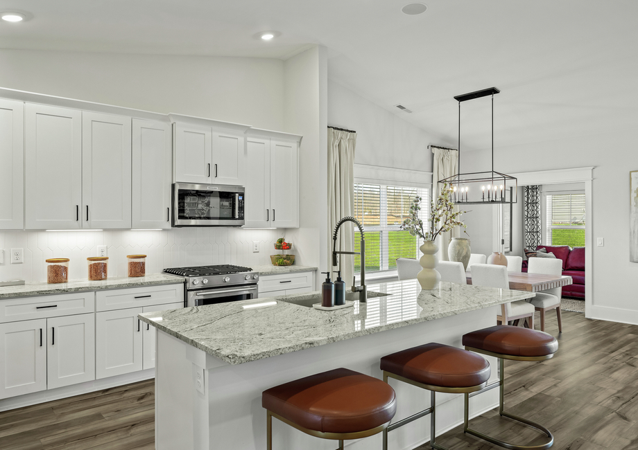 The Burton plan at Springbrook Reserve features an array of modern upgrades at no added cost to you. A full suite of stainless steel kitchen appliances, sprawling granite countertops, 42” upper wood cabinets with crown molding and hardware, blinds throughout, a covered outdoor living and luxury vinyl plank floors are just a few of the desirable upgrades that come standard in the Burton plan.Community Amenities: