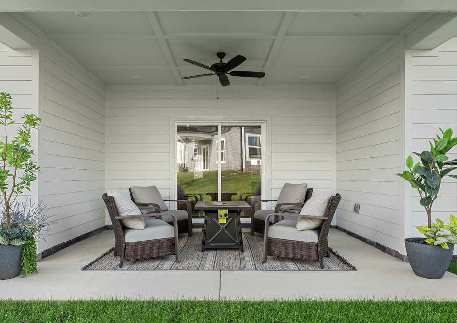 The covered outdoor living space of the Burton is a true oasis that seamlessly extends your living area outdoors. This inviting space is designed to provide comfort and versatility, making it perfect for various activities and relaxation. Imagine a cozy seating arrangement with comfortable chairs and perhaps a coffee table where you can sip your favorite beverage while enjoying the fresh air. You could also set up a dining area with tables and chairs for outdoor meals and barbecues.A Place for All Life's Moments
