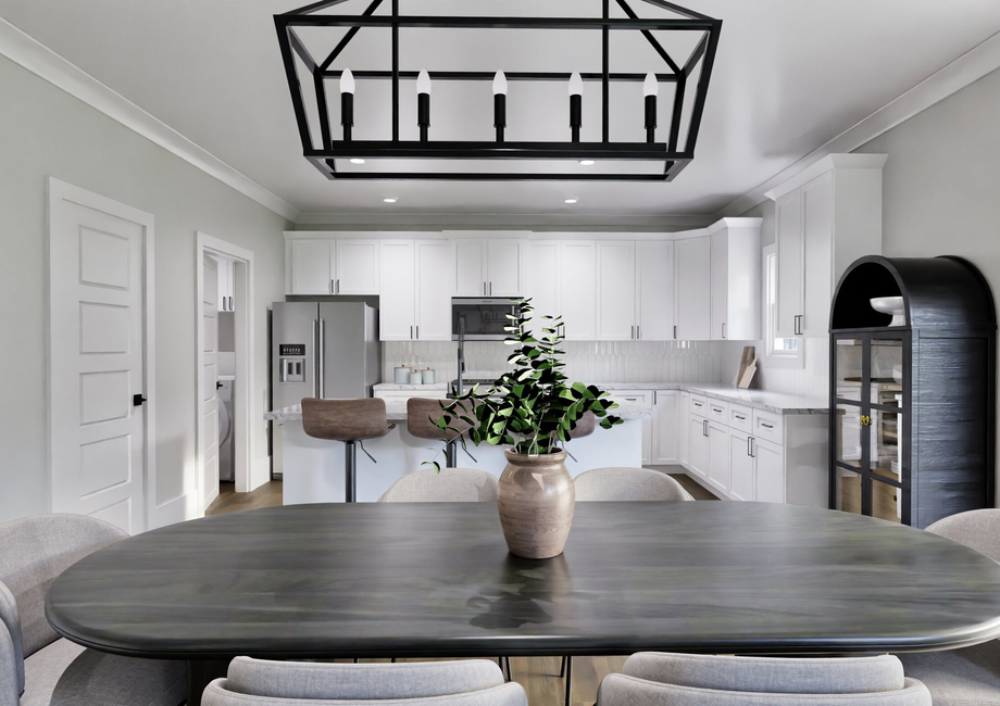 The heart of the Kiawah is the fully loaded kitchen, featuring a stylish kitchen island that effortlessly connects the cooking area to the dining area. This dream kitchen showcases stainless steel appliances, ample counter space, and sleek white cabinetry, making it a chef's dream. Whether you're preparing a quick meal or hosting a dinner party, this kitchen has you covered.