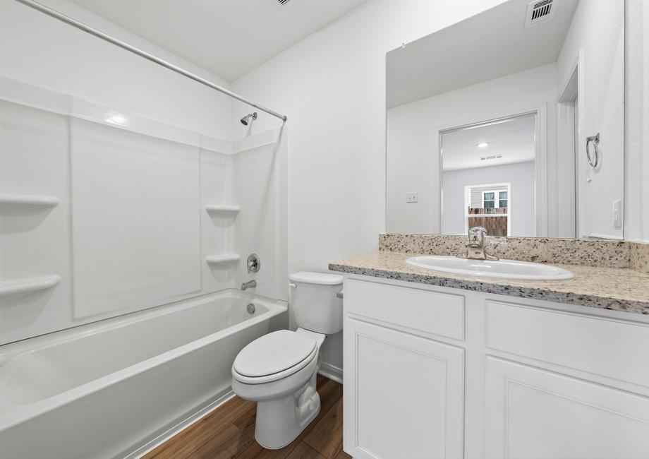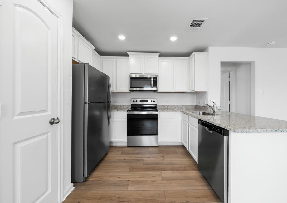 Every home at Cool Water at Sonterra comes outfitted with the highly rated LGI Homes CompleteHome™ package, giving you all of the upgrades you desire at no extra cost. The kitchen comes loaded with upgrades including granite countertops, 36” upper cabinets with crown molding, a full suite of stainless-steel Whirlpool® appliances, recessed lighting, and a large single basin sink.