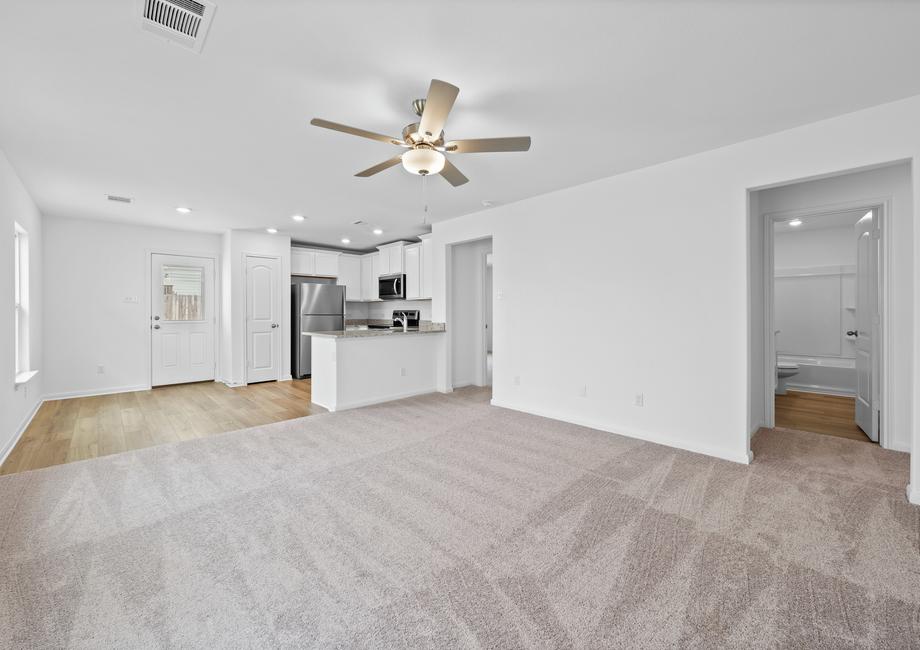 The open-concept design of the Acorn plan was created with efficiency top of mind. The kitchen overlooks the living room and dining area so that you never miss a beat as you prep your next meal. The laundry room is directly connected to the garage, making it easy to kick off any dirty shoes or clothes and put them directly in the washing machine.