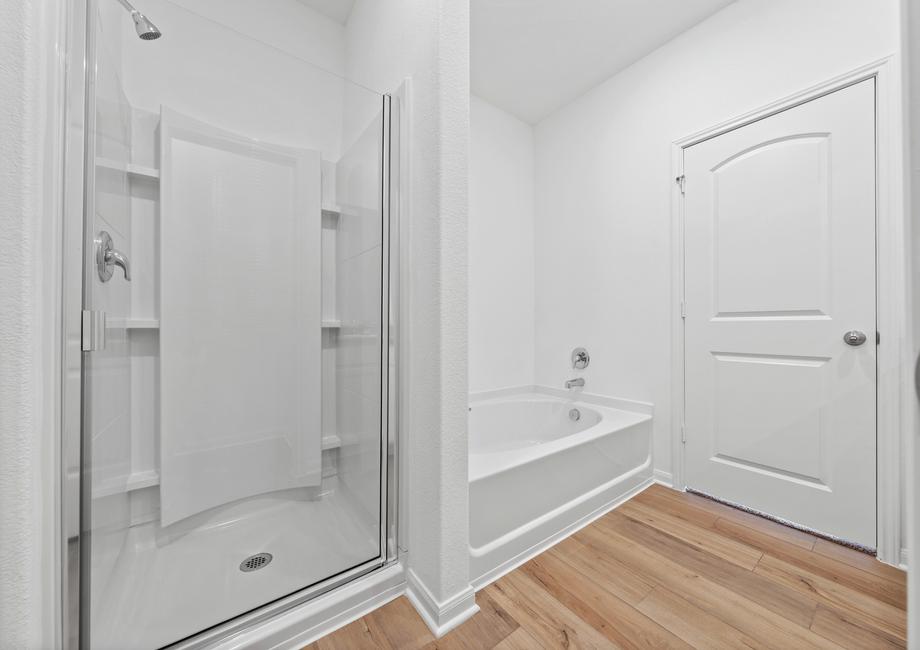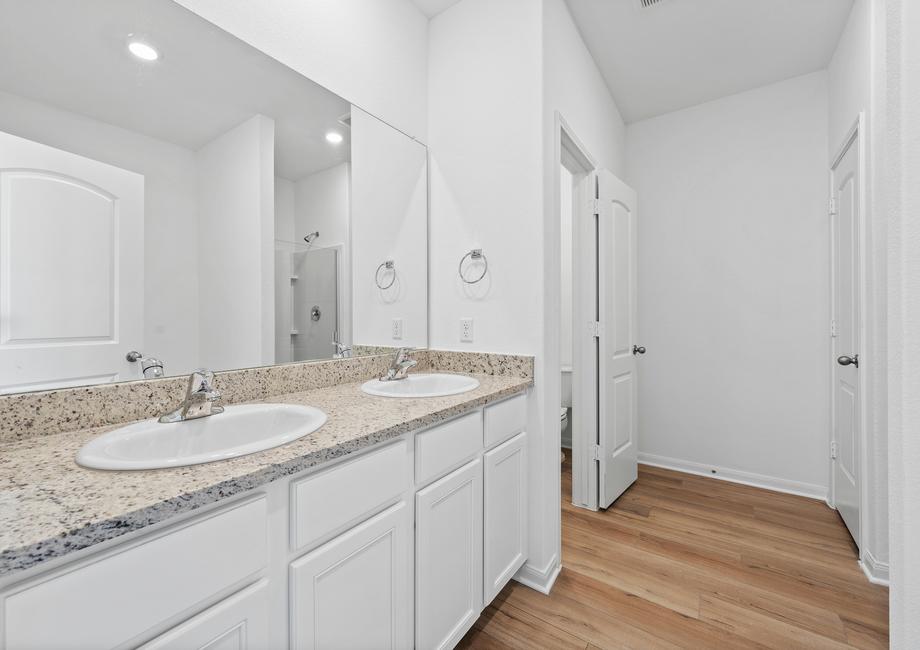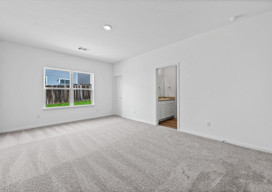 After a long day, come home and let loose in the spacious master suite. Kick off your shoes and relax on your king-sized bed or soak in the master bathroom tub. The master bedroom is incredibly spacious and the attached bathroom offers a double-sink vanity, soaking tub, and walk-in shower. Enjoy a large walk-in closet with wrap-around shelves, giving you all the space you need for your wardrobe.