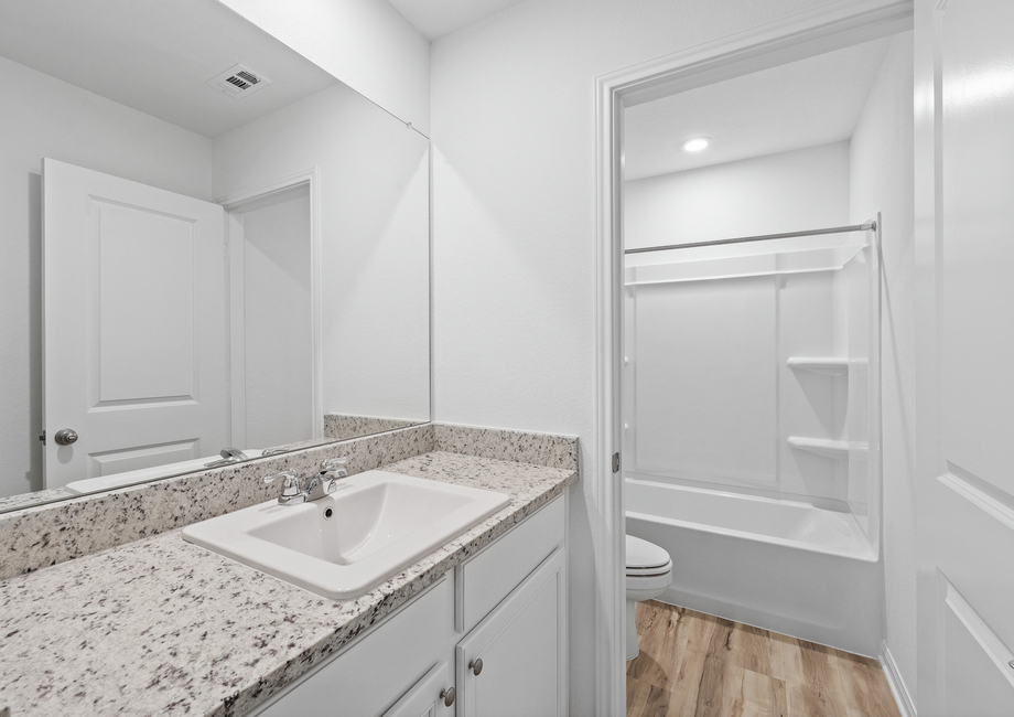 The Marek plan comes with all of the incredible upgrades highlighted in LGI Homes’ CompleteHome™ package. Energy-efficient Whirlpool® kitchen appliances, sparkling granite countertops, 36” upper wood cabinets with crown molding detail and a Wi-Fi-enabled garage door opener are just a few of the designer upgrades that come standard in this new construction home at Homestead Estates.