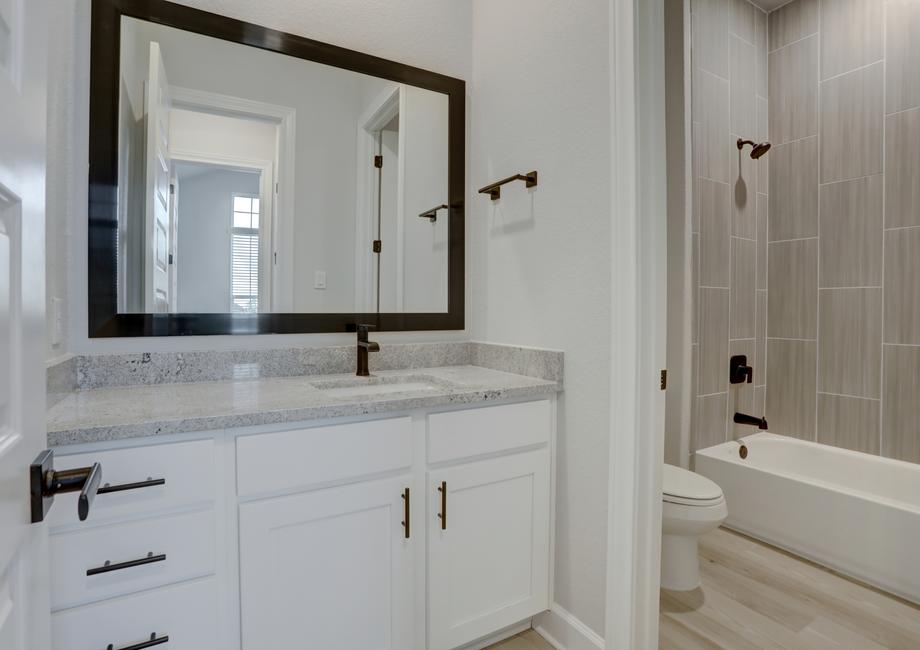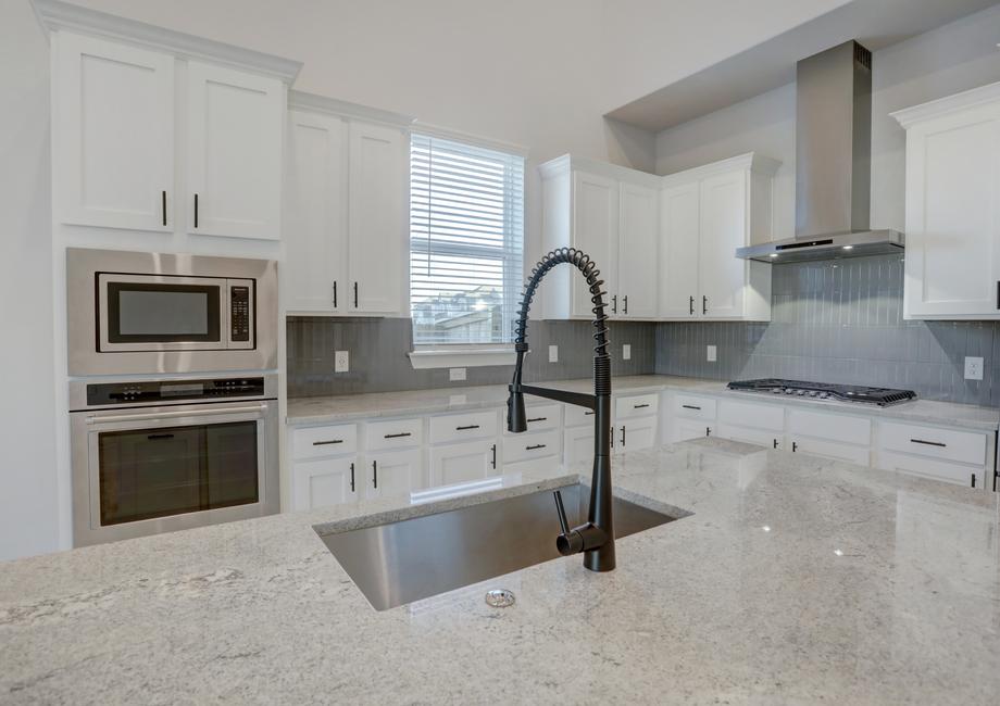 A chef-ready kitchen with designer upgrades awaits for you in the Welch! With sprawling Himalayan white granite countertops, white cabinetry with crown molding, stainless Whirlpool® appliances, and a large center island, the Welch kitchen is nothing short of a dream. You will love cooking dinner for friends and family, with an overlook of the family room so you never miss out on the conversation.