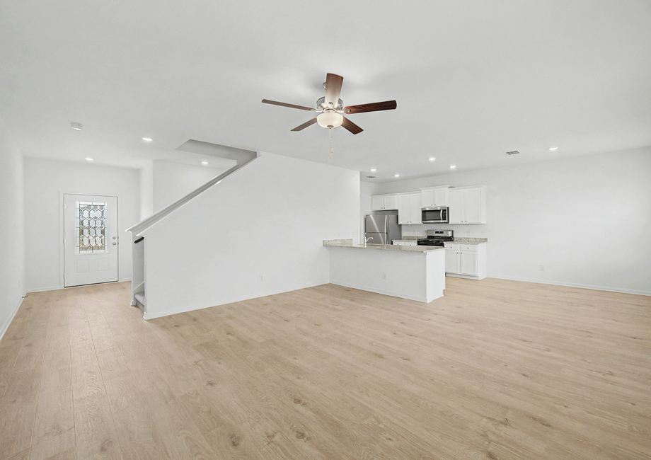 The two-story Mesquite plan overflows with charm and convenience for every day living! This three-bedroom, two-and-a-half bath plan gives you the living space you desire so no one feels cramped while visiting. The open-concept design of the first floor sets you up for easy entertaining and convenience. The kitchen overlooks the living room and dining area so you don’t miss out on your favorite show or fun conversation while you cook. Upstairs, you’ll find the impressive master suite, along with two additional bedrooms and a laundry room.