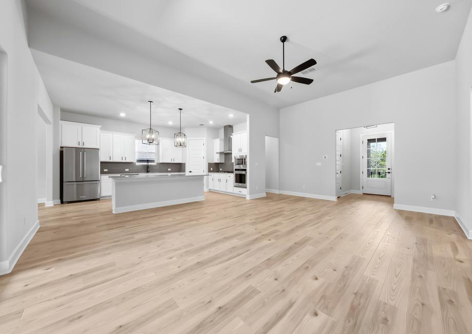 Within the Leland floor plan, you will find a large, open great room perfect for entertaining, relaxing and creating memories that will last a lifetime. The living area hosts a large glass sliding door that truly brings the outdoors in. Off the great room of the Leland you have direct access to the master suite in addition to the fully equipped kitchen.
