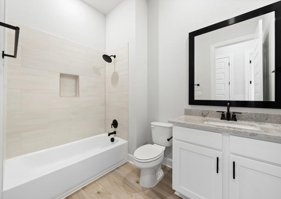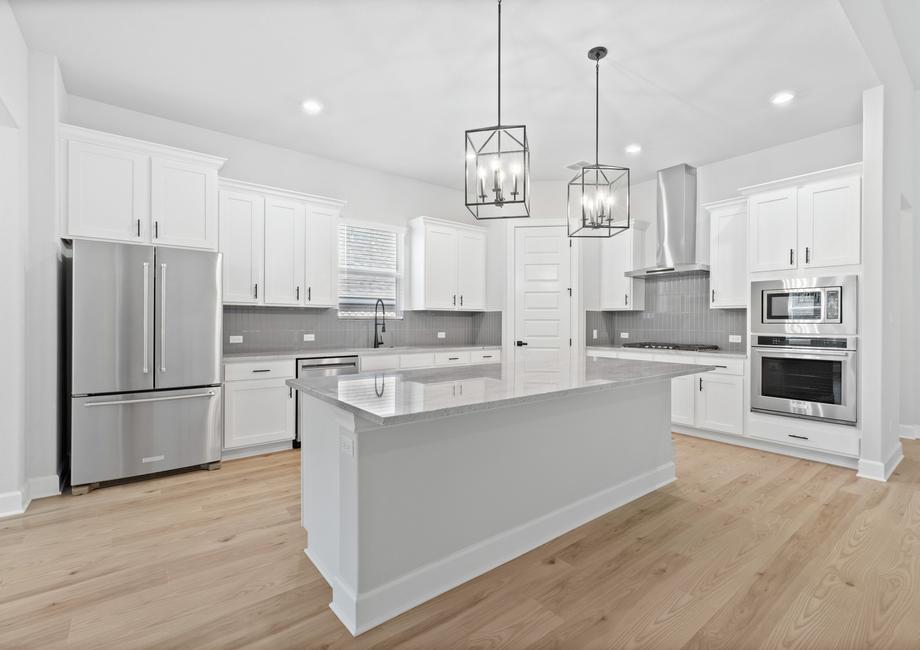 The Leland floor plan was designed to surpass expectations with a host of impressive upgrades included at no extra cost to you. A full suite of stainless-steel kitchen appliances, including the refrigerator, gorgeous granite countertops, 42” upper wood cabinets with crown molding, gorgeous designer flooring, programmable thermostats and professionally designed front yard landscaping are a sampling of the upgrades you will find in the Leland.