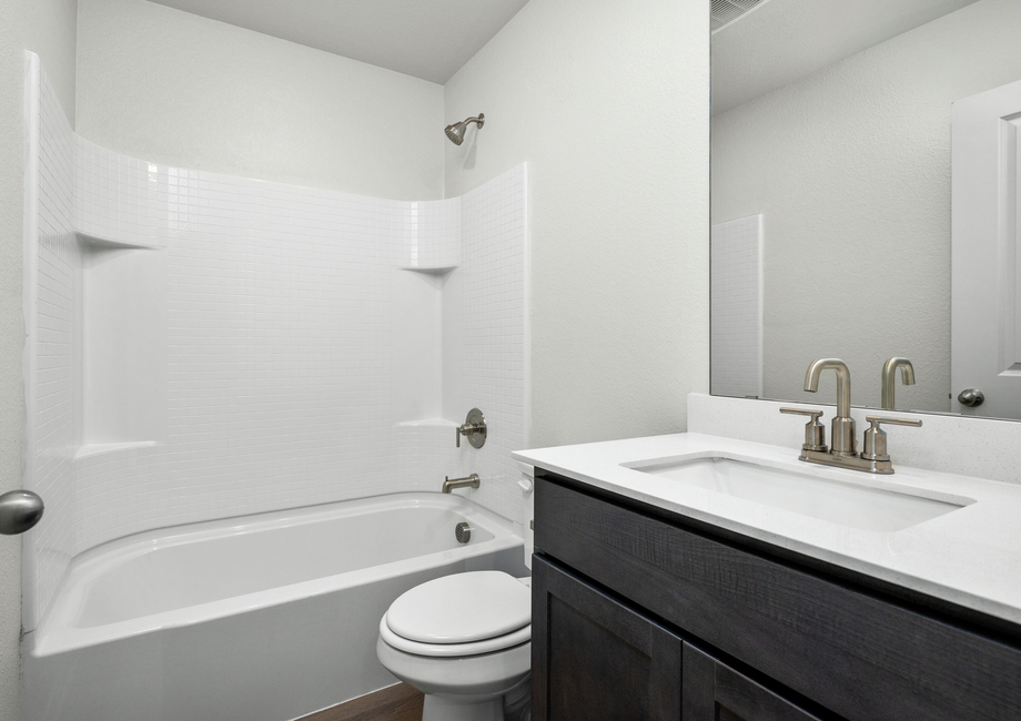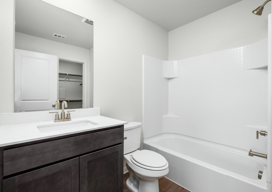 The master suite in the Ash is a serene retreat designed for relaxation. The bedroom provides plenty of space for large furniture, while the spa-like bathroom features a stunning glass walk-in shower and an expansive vanity, making mornings effortless. Additionally, the large walk-in closet offers plenty of storage for clothes, shoes and personal items. This space is perfect for unwinding at the end of the day and starting each morning with ease.