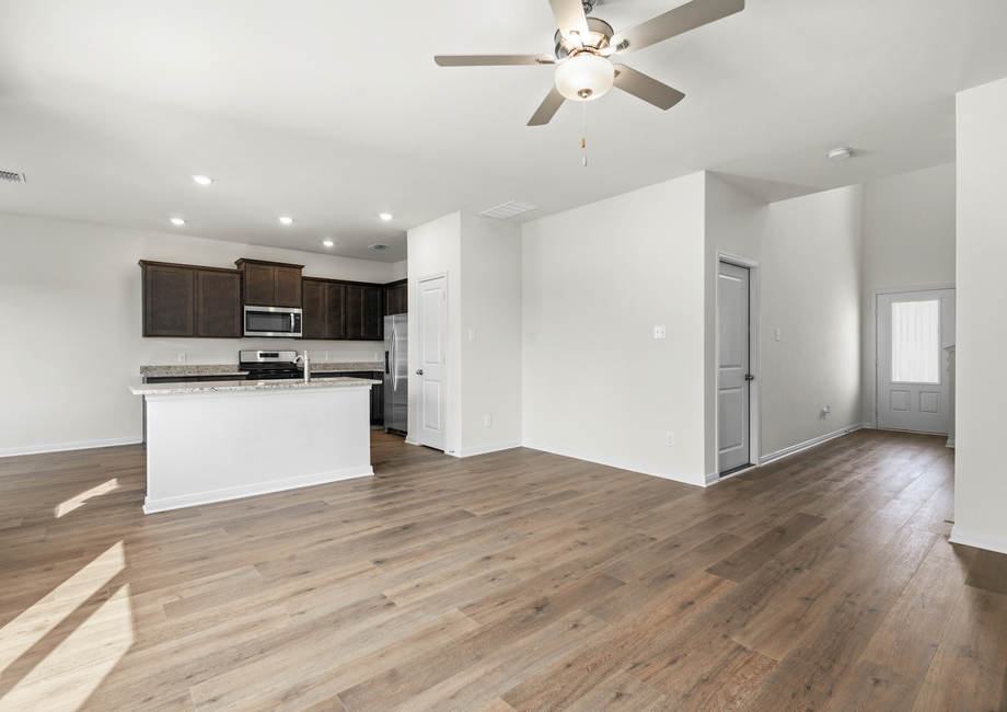 The Colorado's open concept layout effortlessly blends the living spaces, promoting connectivity and continuity throughout. From the inviting foyer to the spacious living room and open dining area, this arrangement fosters an inviting atmosphere for gatherings and spending quality time with family. Its fluid design encourages interaction and enhances versatility, guaranteeing both comfort and practicality for everyday living.