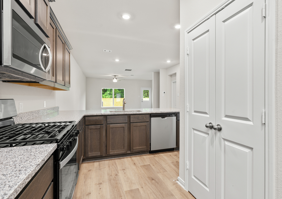 This home’s open-concept layout is crafted for effortless family living, effortlessly connecting the kitchen, dining, and family room areas. This seamless flow encourages togetherness, allowing family members to interact whether they’re cooking, dining or relaxing. The well-planned design enhances both practicality and comfort, making daily routines and special moments more enjoyable.