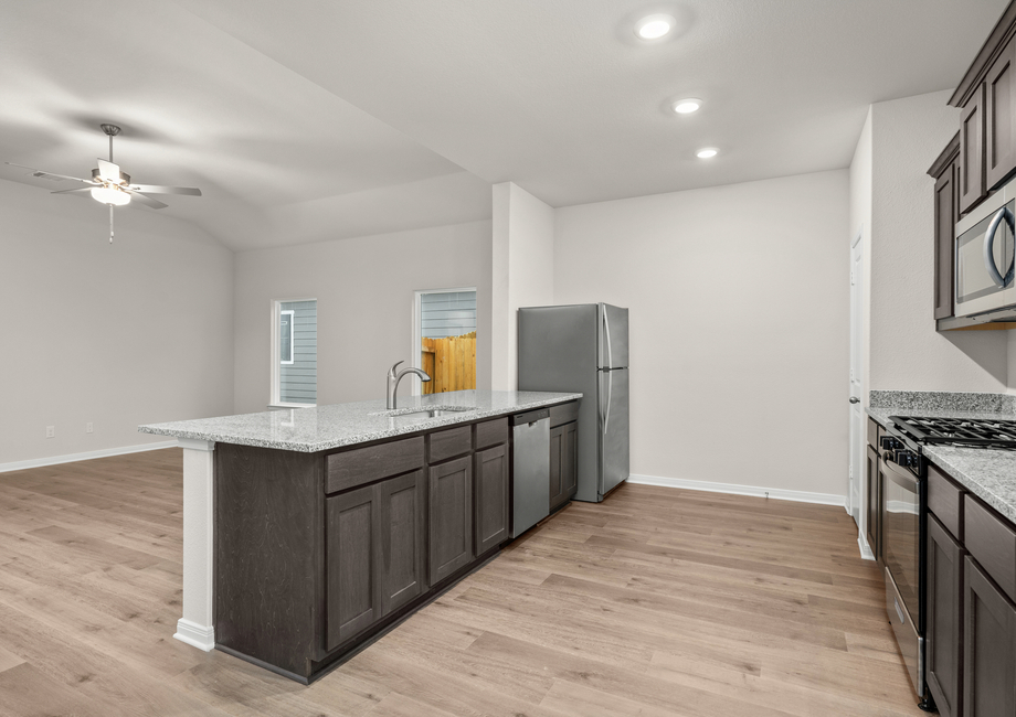 The Reed floor has four bedrooms, two bathrooms and an attached two-car garage, offering ample space for your family. The upgraded kitchen features beautiful wood cabinets, granite countertops and stainless-steel Whirlpool® appliances. Adjacent to the kitchen, the dining room provides an inviting space for family meals and gatherings. The spacious family room is bathed in natural light streaming through large windows, creating a warm and welcoming atmosphere. Tucked away for privacy, the master suite offers a serene retreat, featuring a generously sized bedroom, a private bathroom and a large walk-in closet, ensuring comfort and convenience at every turn.