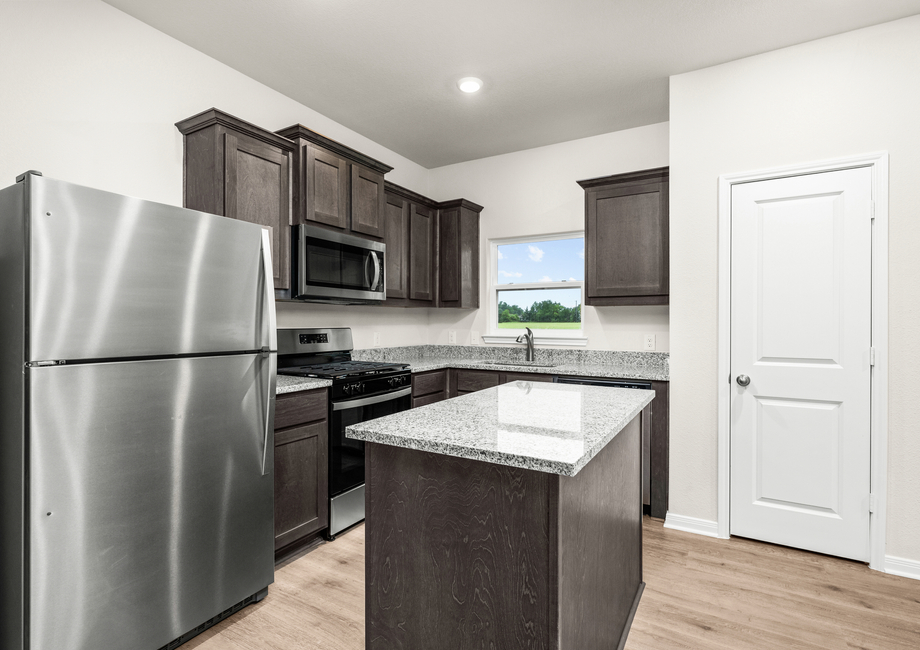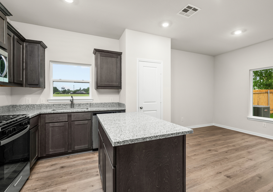 The wonderful kitchen in the Sabine has all the upgrades you’ve been looking for. Beautiful wood cabinetry provides ample storage, gorgeous granite countertops are the perfect workspace and energy-efficient appliances make cooking and cleaning effortless. Additionally, the convenient island offers extra workspace and seating for casual dining. Whether you're preparing nightly family meals or creating a full spread for entertaining guests, this kitchen is designed to support you every step of the way.