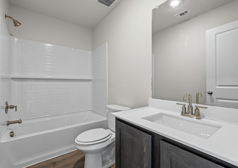 The Ashton floor plan’s exterior is thoughtfully designed to create a warm and inviting atmosphere for both homeowners and guests. Featuring a beautiful brick exterior and a charming covered front porch, this home makes a lasting first impression. Whether you’re savoring a quiet morning with a cup of coffee or welcoming friends and family, the entryway serves as a beautiful introduction to the comfort and style found within. Step inside to discover a thoughtfully designed layout that blends elegance with everyday functionality.