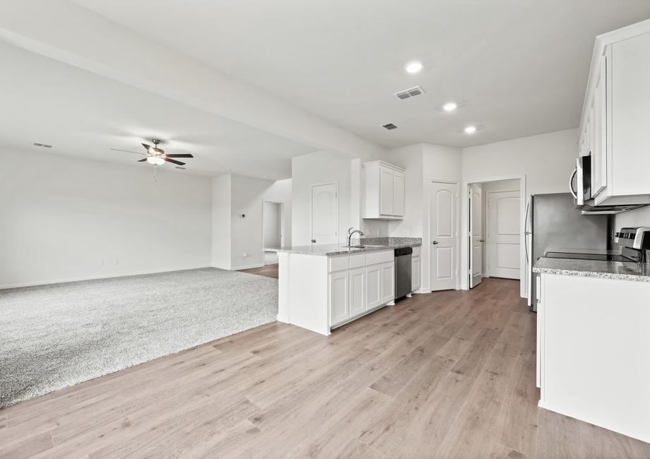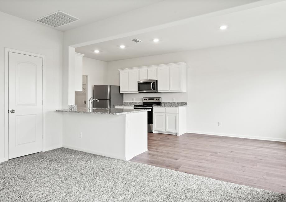 Enjoy the luxury of having plenty of space for family living in the Cypress plan. The spacious kitchen has plenty of cabinet space for all your dishes and cookware, while the pantry is the perfect place to house your food and spices. Each bedroom in this home is equipped with their own walk-in closet that has plenty of space for clothes, shoes and personal belongings. The coat closet in the family room is a great space to store the family’s bulky winter coats.
