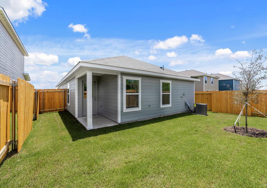 The Cedar floor plan features the highly coveted covered back patio. Coupled with the fully fenced in back yard, it offers a private space for children and pets to play freely. Inviting you to relax out of the sun, the covered patio is a great space for year-round outdoor enjoyment, perfect for hosting delightful backyard barbecues with loved ones.