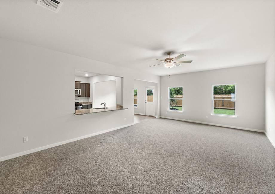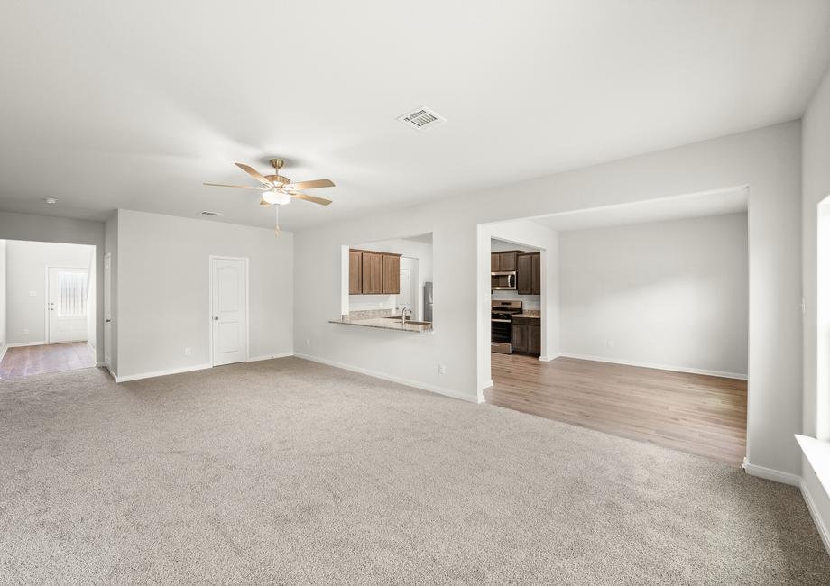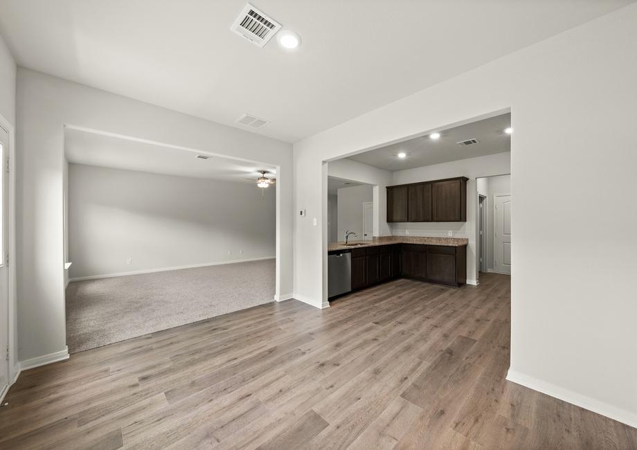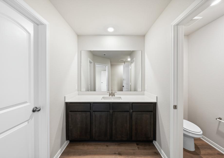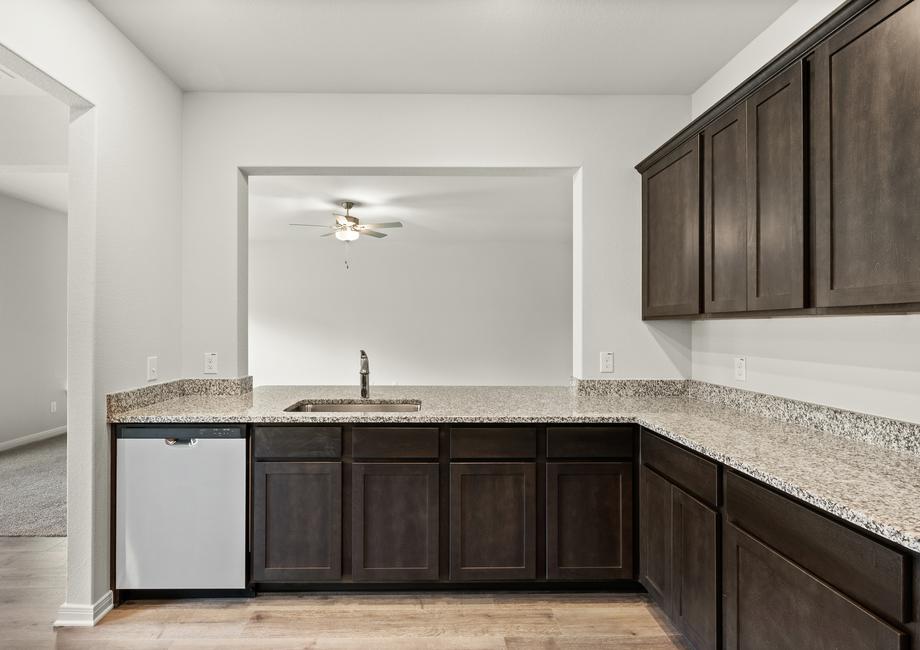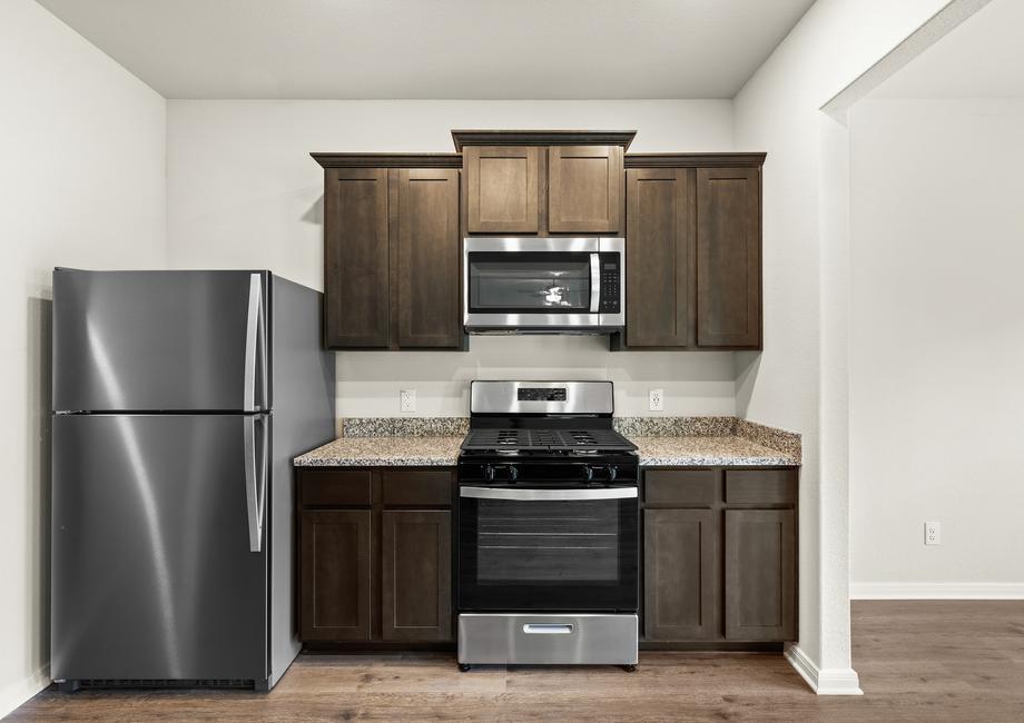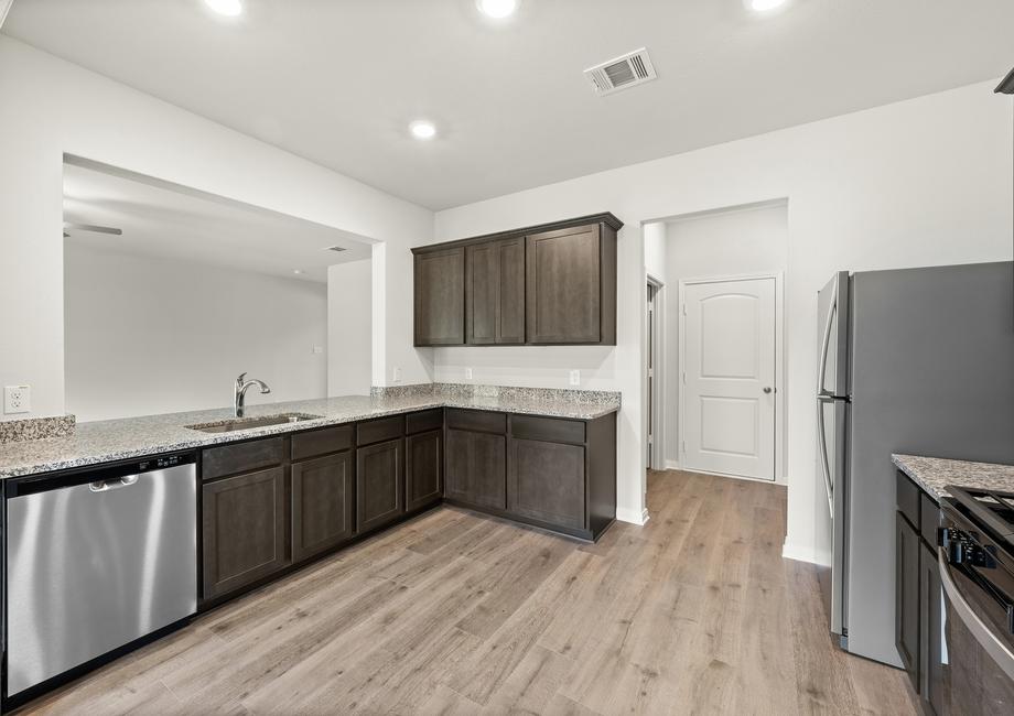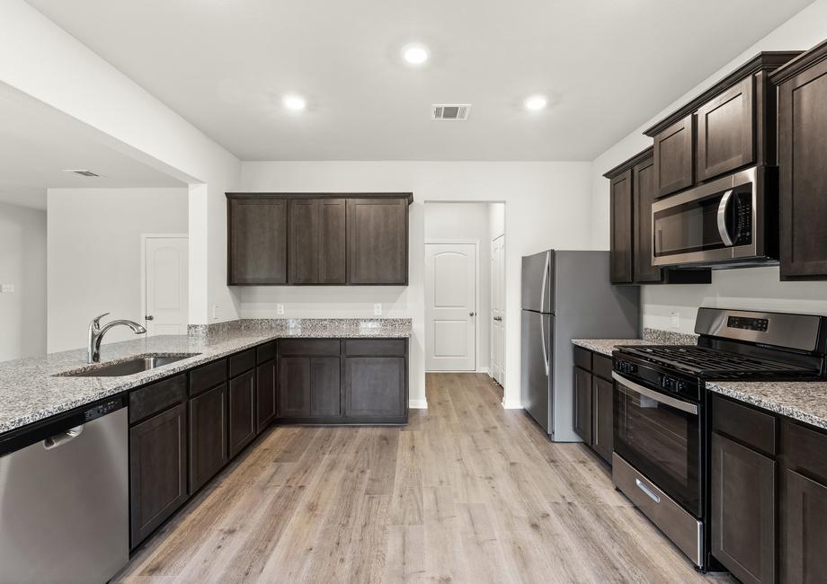 The upgraded kitchen in the Rayburn was designed for chefs of all skill levels, boasting top-of-the-line features designed to enhance family dinners and special gatherings. With energy-efficient appliances, sprawling granite countertops and designer wood cabinetry, every detail is tailored for both style and practicality. From intimate family meals to lavish dinner parties, this kitchen sets the stage for unforgettable culinary experiences and cherished moments with loved ones.