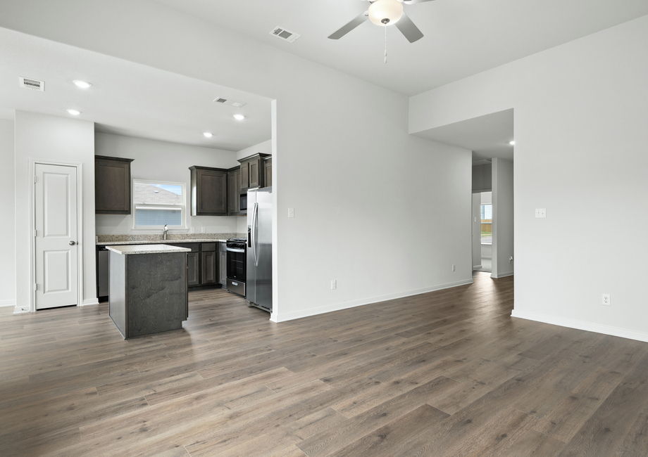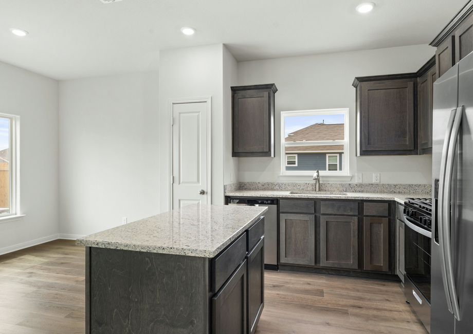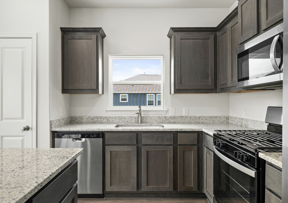 The kitchen of the Blanco plan comes completely chef-ready! Included in the kitchen, you will find sprawling granite countertops, oversized wood cabinetry, a full suite of energy-efficient Whirlpool® appliances and more. Additionally, enjoy plenty of cabinet storage for your food and cookware!